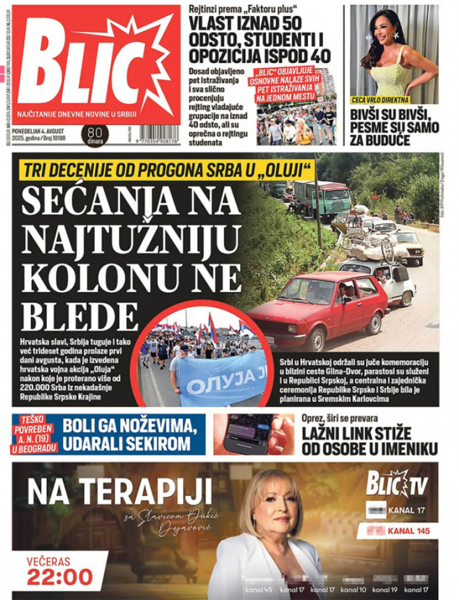 Naslovne strane dnevnih novina: Prelistavanje štampe za 4. avgust 2025. godine