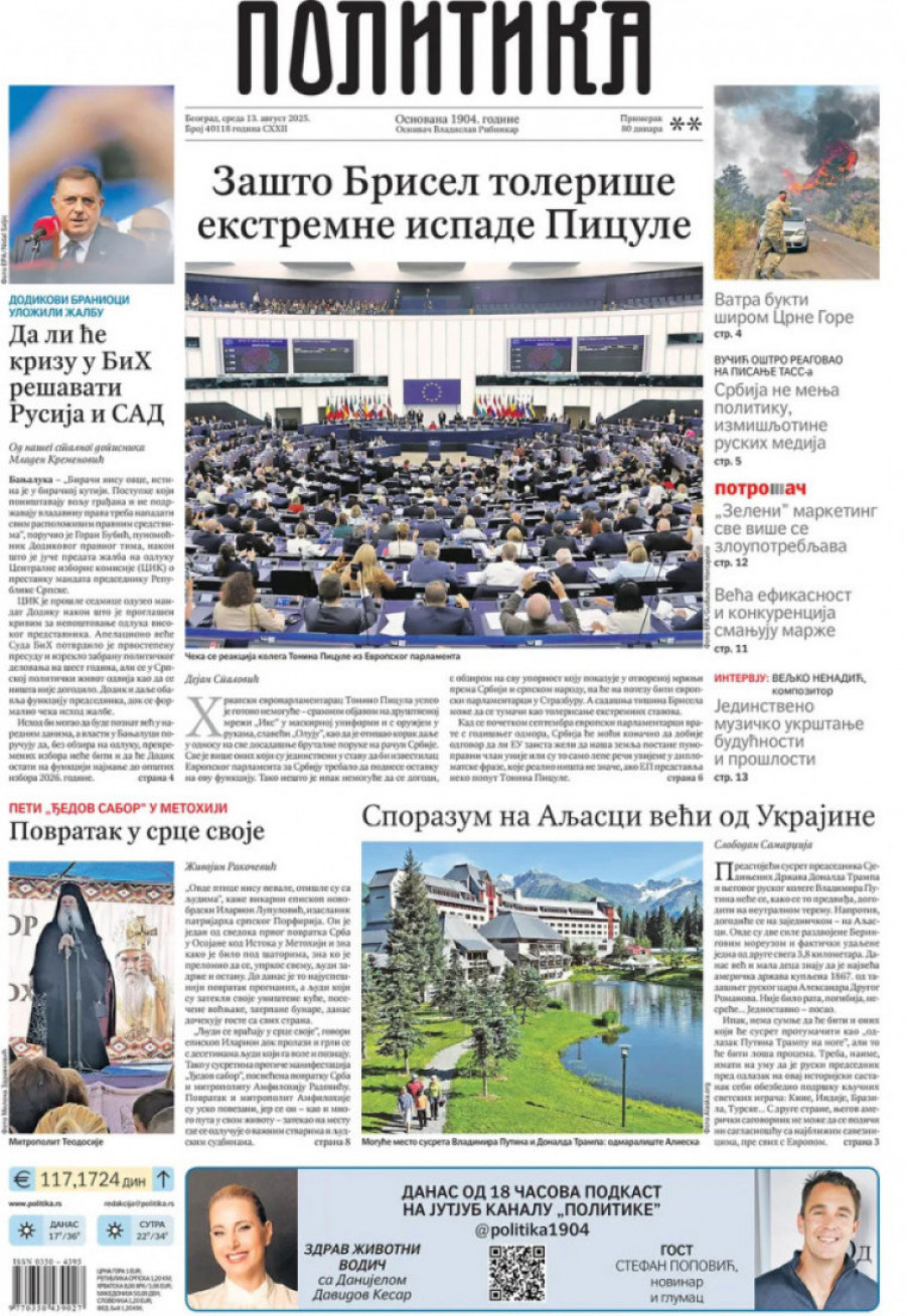Dnevne novine u Srbiji za sredu 13. avgust 2025. godine, na naslovnim stranama najavljuju brojne aktuelne društveno-političke teme.