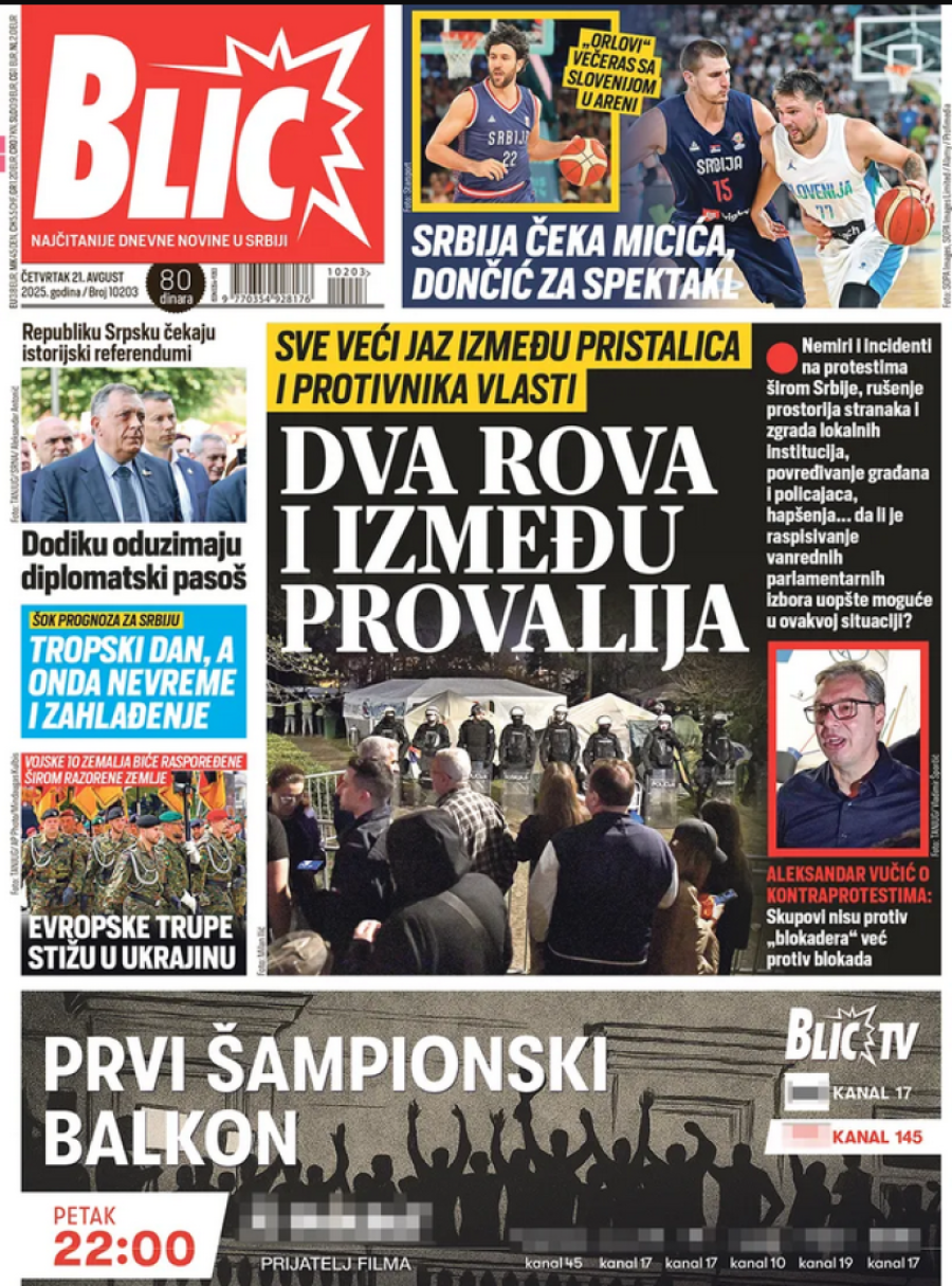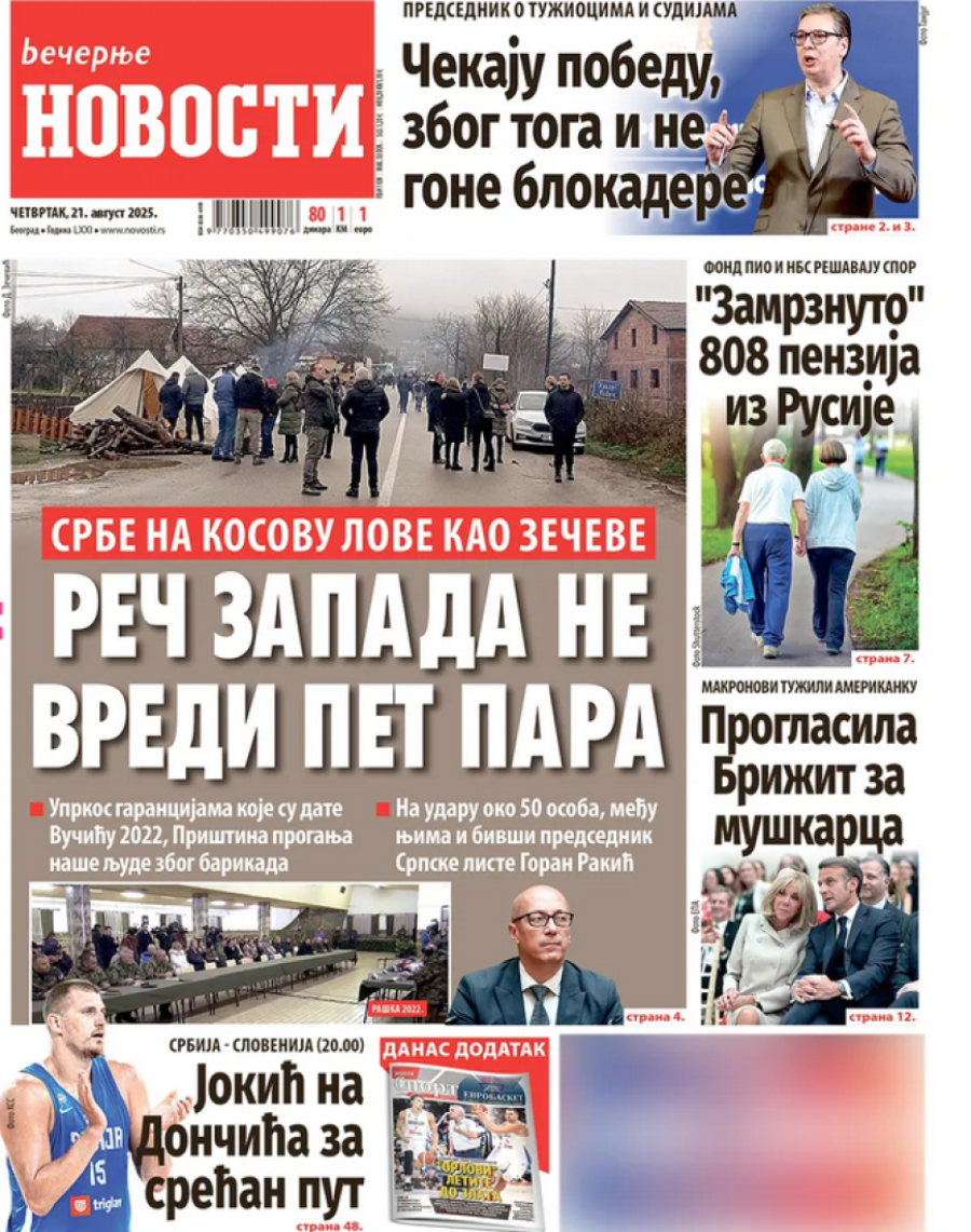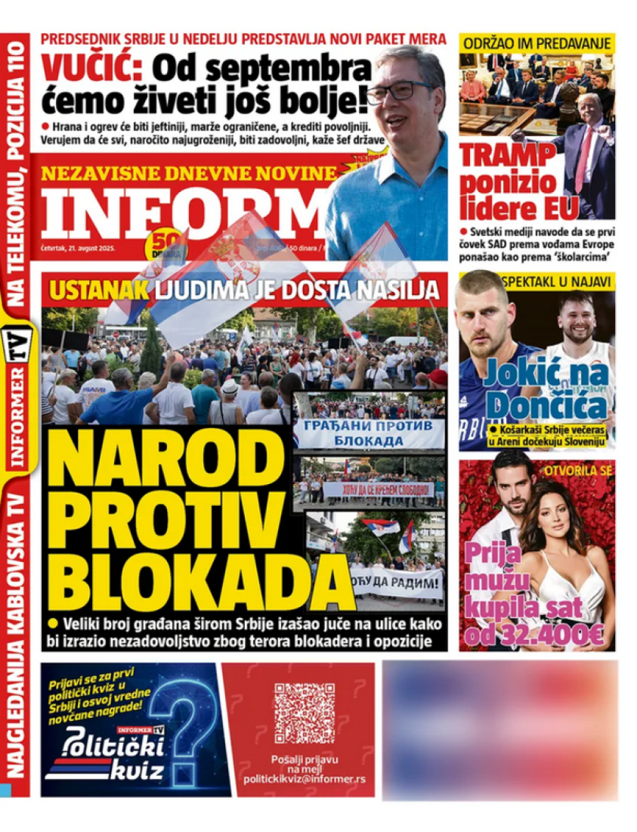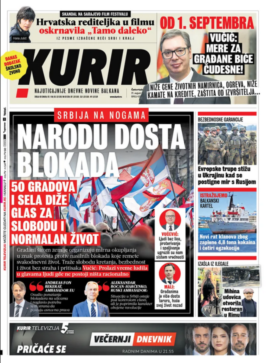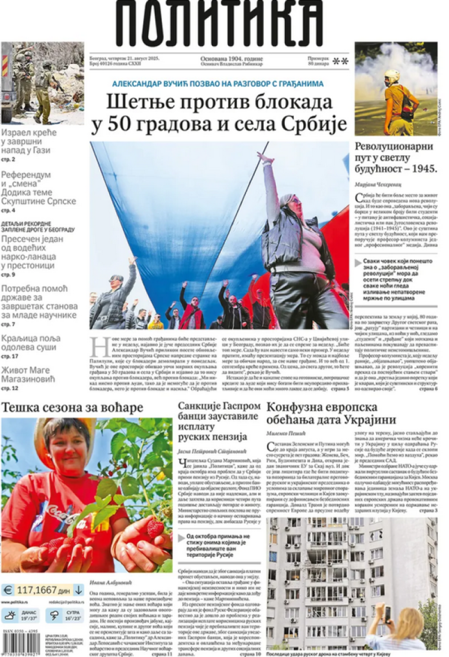 Naslovne strane dnevnih novina: Prelistavanje štampe za 21. avgust 2025. godine