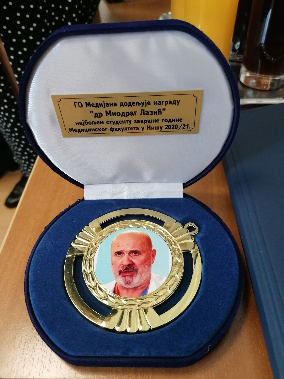 – Danas je vrlo emotivan dan jer bismo slavili mom ocu rođendan, da je uspeo da pobedi koronu. Ali velika mi je čast što sam ovde, da ova nagrada nosi njegovo ime. On bi bio presrećan da zna da će od danas najbolji student Medicinskog fakulteta u Nišu nositi nagradu „Dr Miodrag Lazić“. Jeleni želim sve najbolje u daljem školovanju – rekla je Nina.