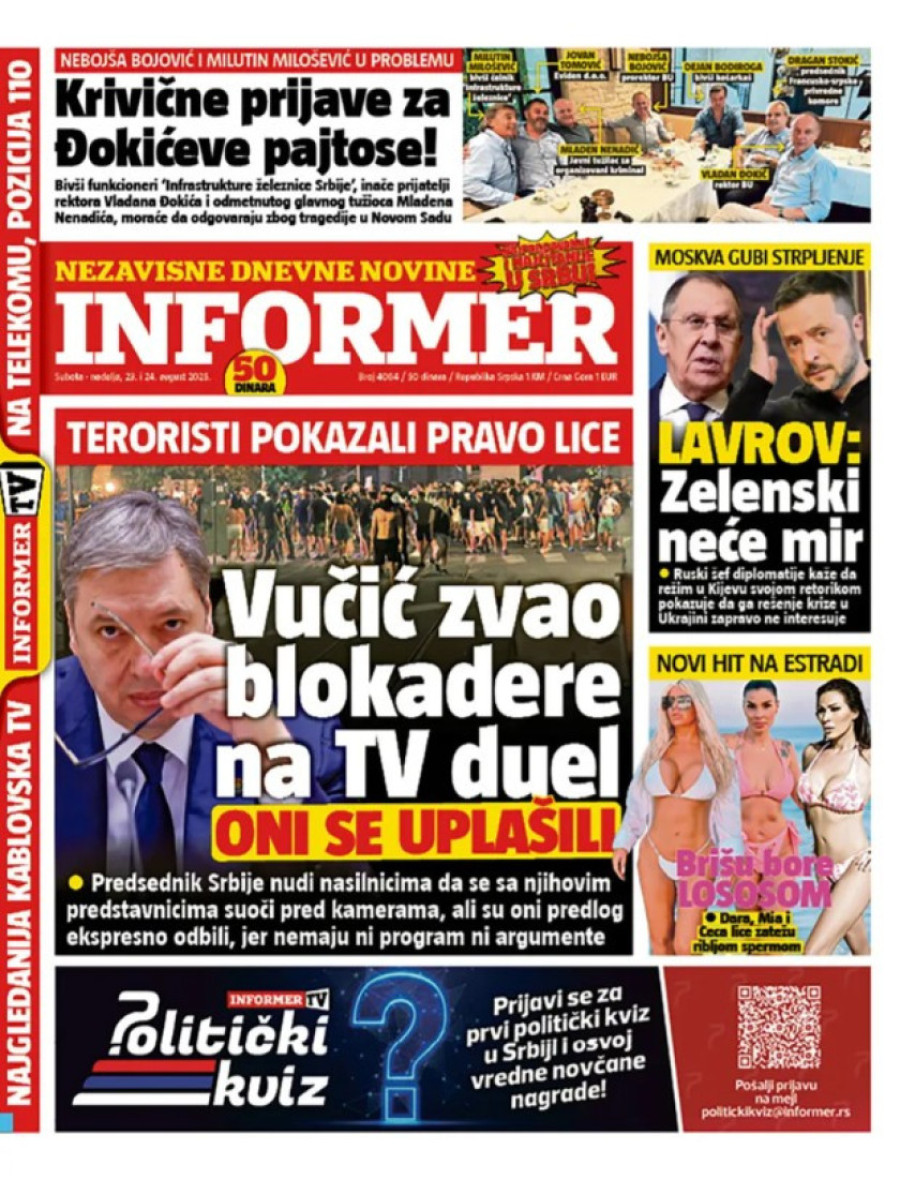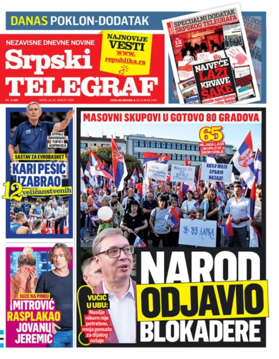 Naslovne strane dnevnih novina: Prelistavanje štampe za 24. avgust 2025. godine