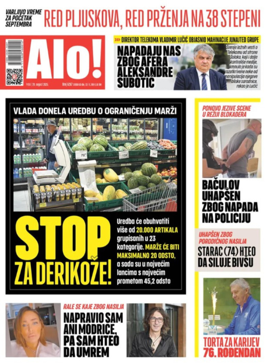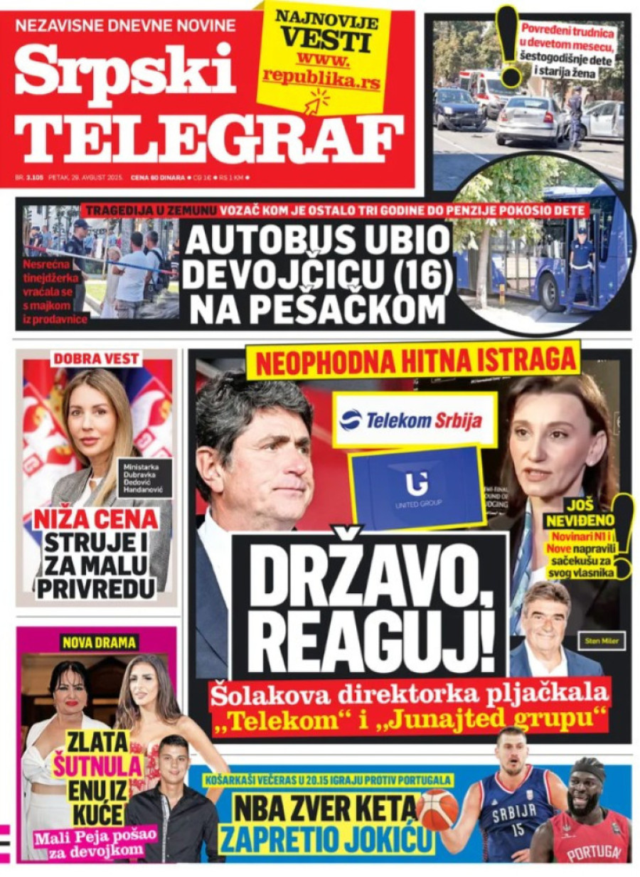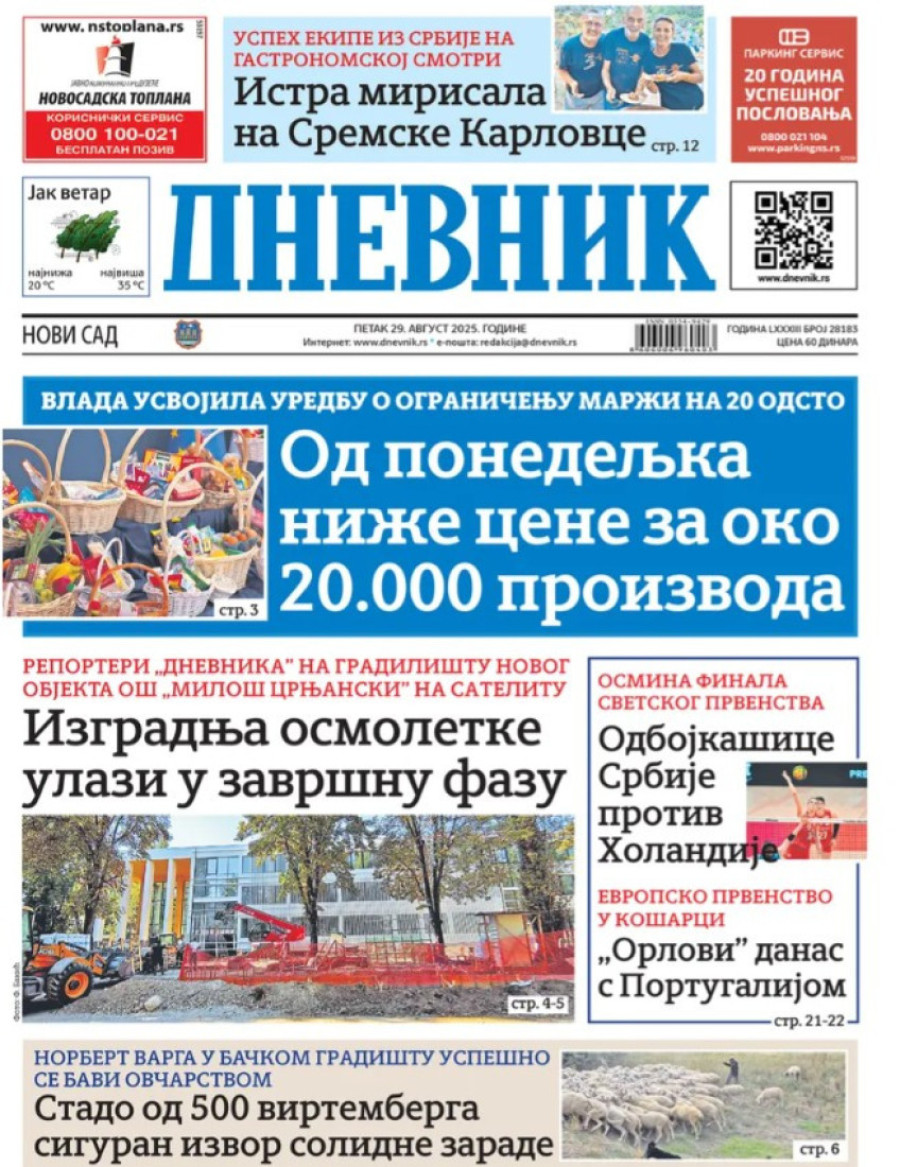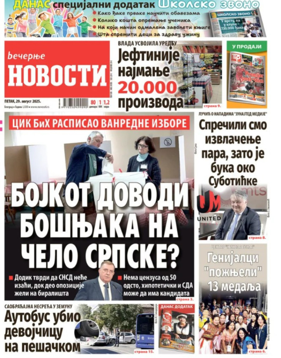 Naslovne strane dnevnih novina: Prelistavanje štampe za 29. avgust 2025. godine