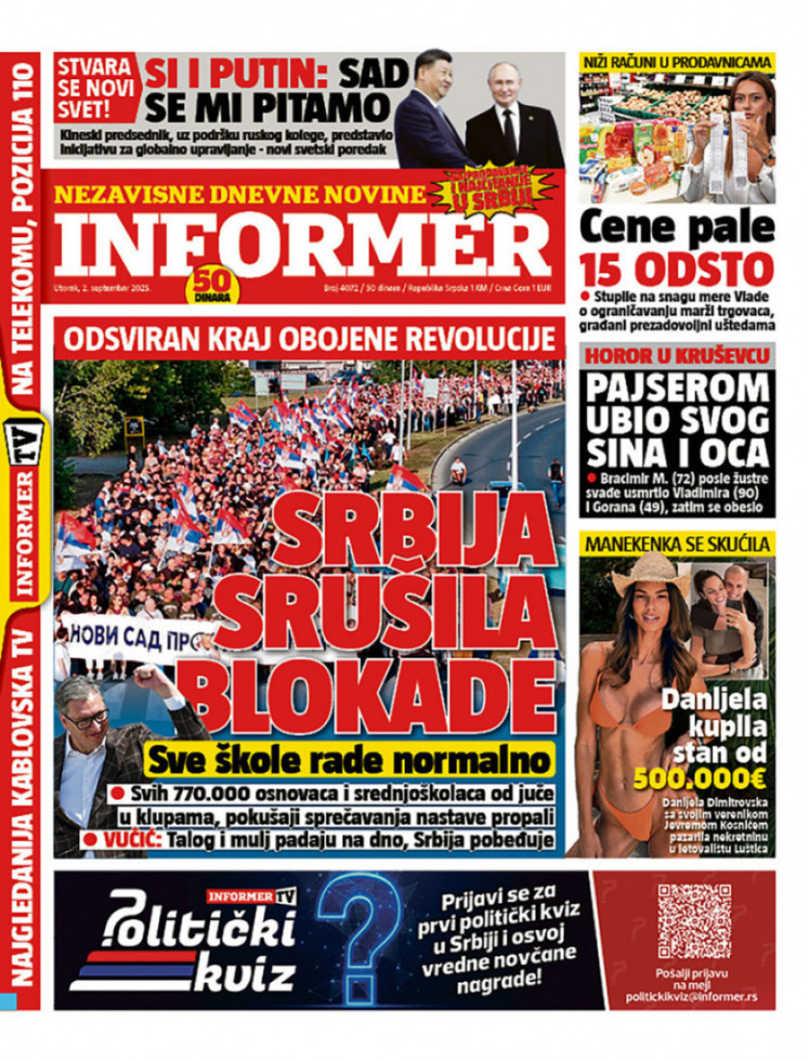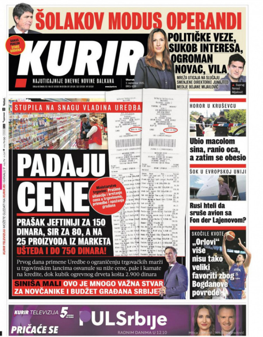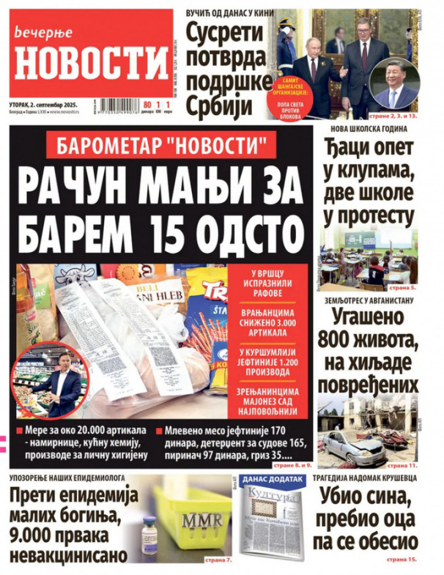 Naslovne strane dnevnih novina: Prelistavanje štampe za 2. septembar 2025. godine