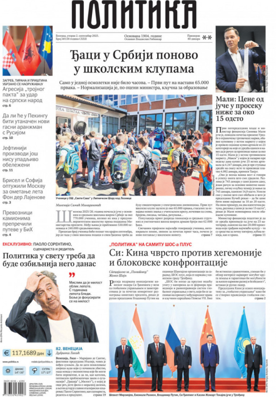 Dnevne novine u Srbiji za utorak 2. septembar, na naslovnim stranama najavljuju brojne aktuelne društveno-političke teme.