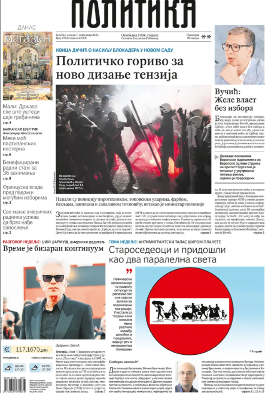 Naslovne strane dnevnih novina: Prelistavanje štampe za 7. septembar 2025. godine