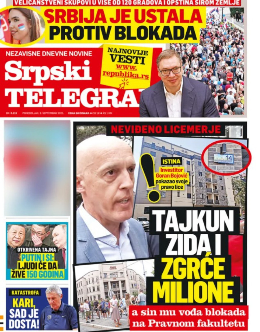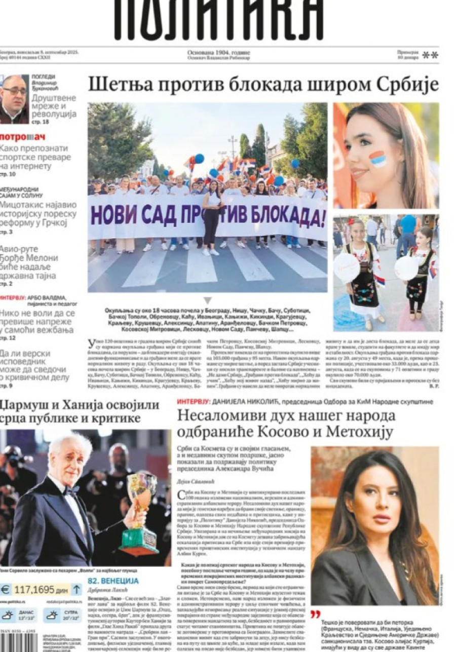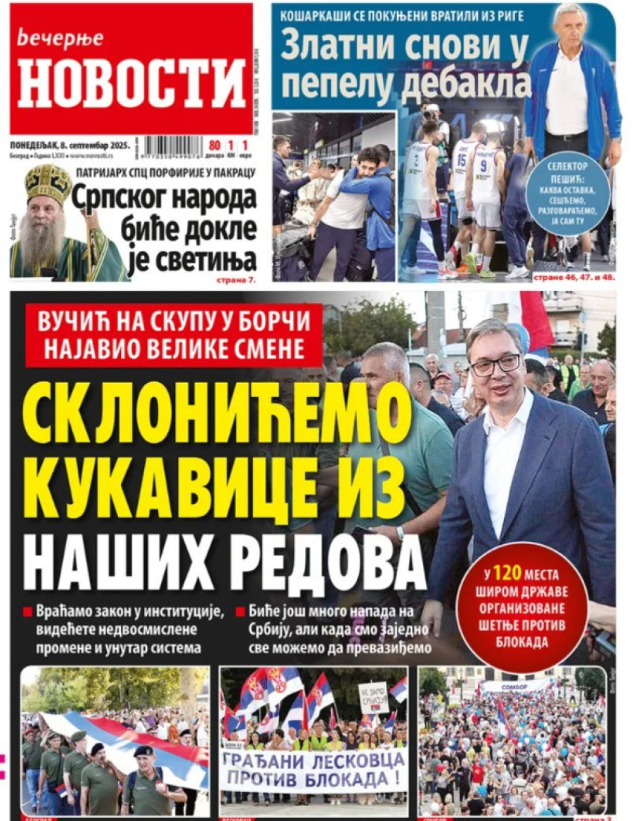 Naslovne strane dnevnih novina: Prelistavanje štampe za 8. septembar 2025. godine