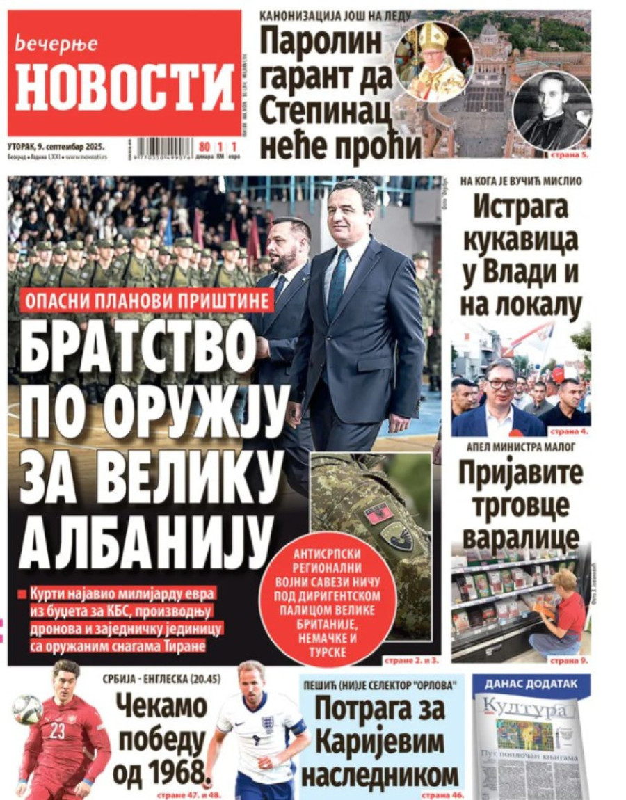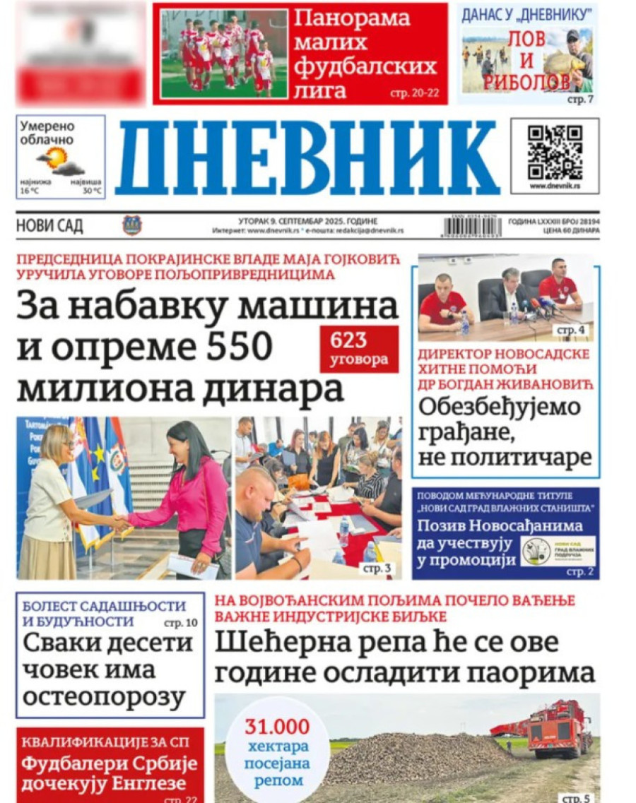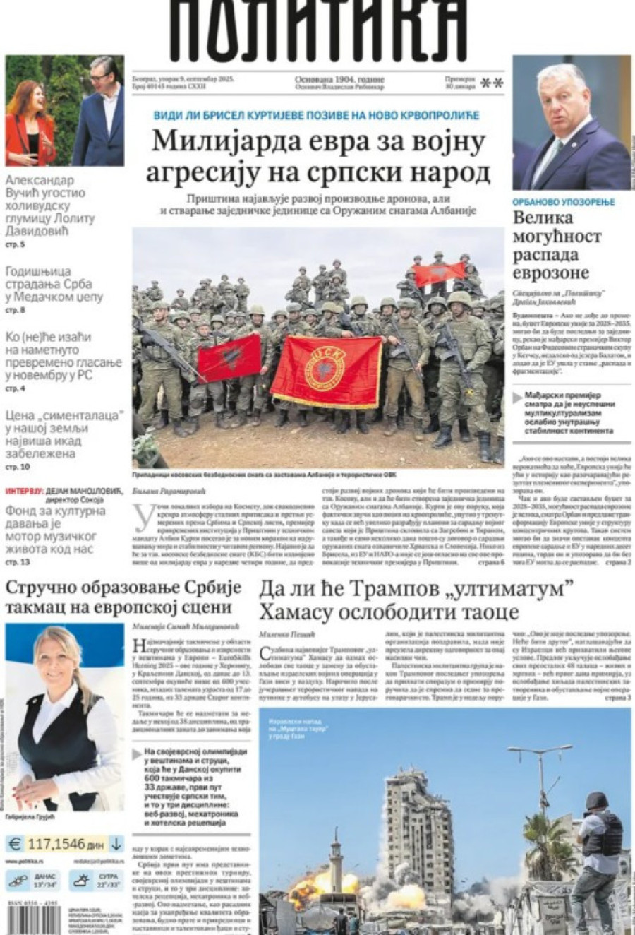 Naslovne strane dnevnih novina: Prelistavanje štampe za 9. septembar 2025. godine