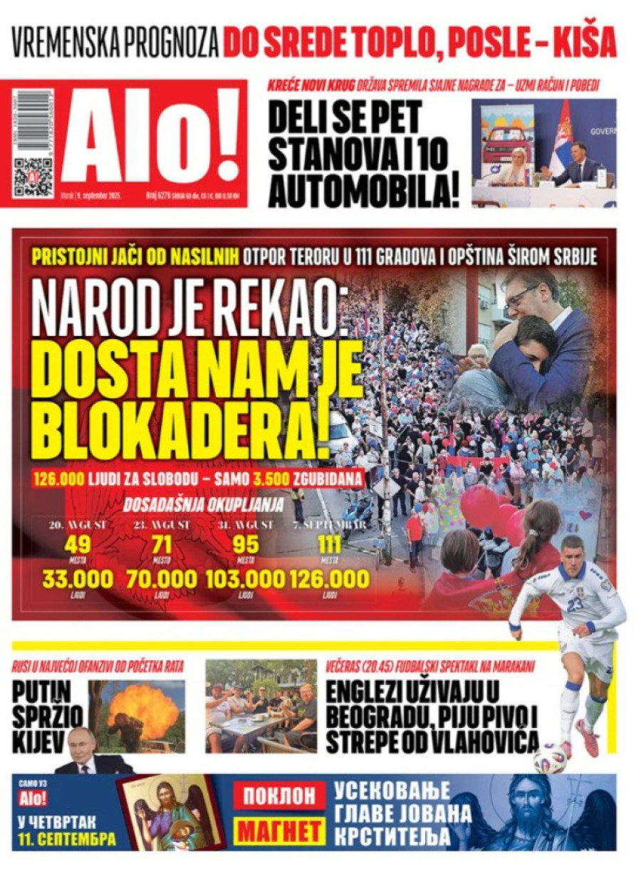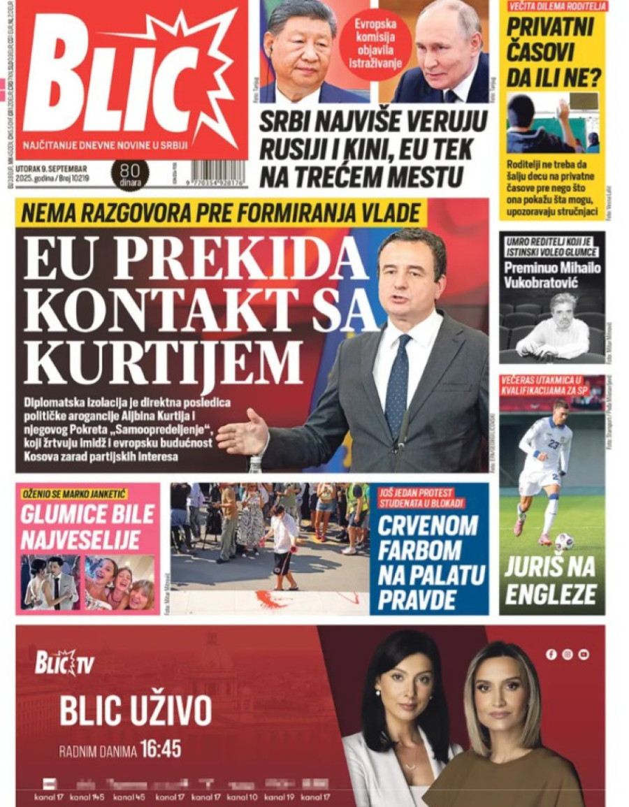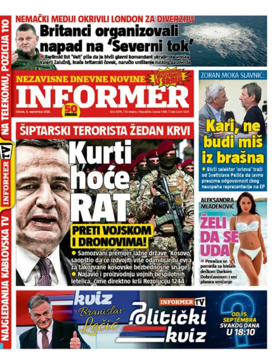 Naslovne strane dnevnih novina: Prelistavanje štampe za 9. septembar 2025. godine