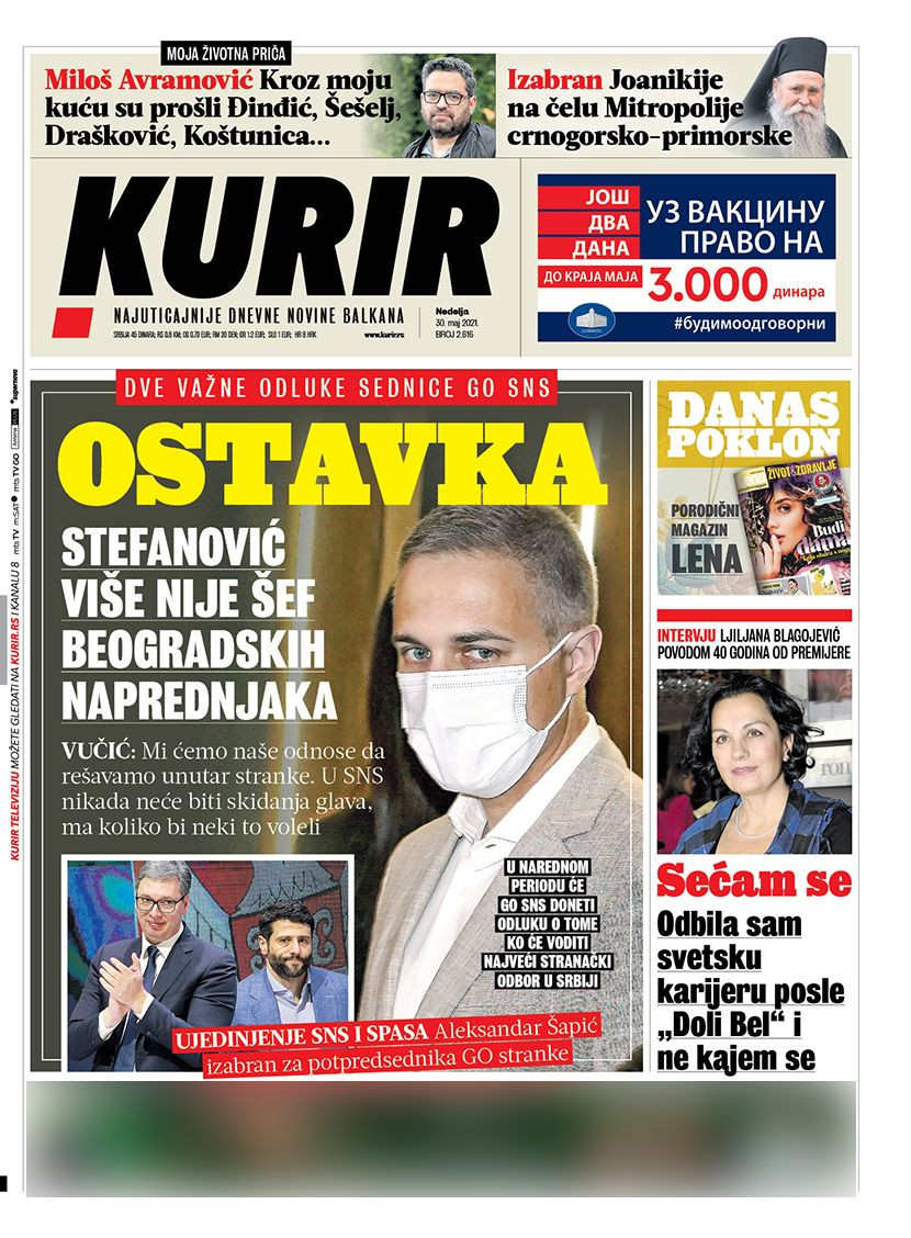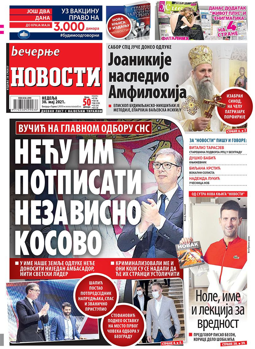 Dnevne novine u Srbiji za nedelju, 30. maj 2021. godine, na naslovnim stranama najavljuju brojne aktuelne društveno-političke teme i donose ekskluzivne priče.