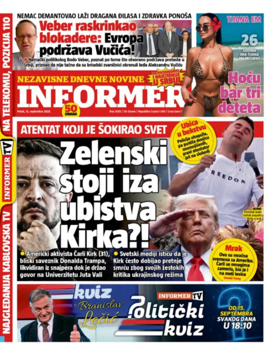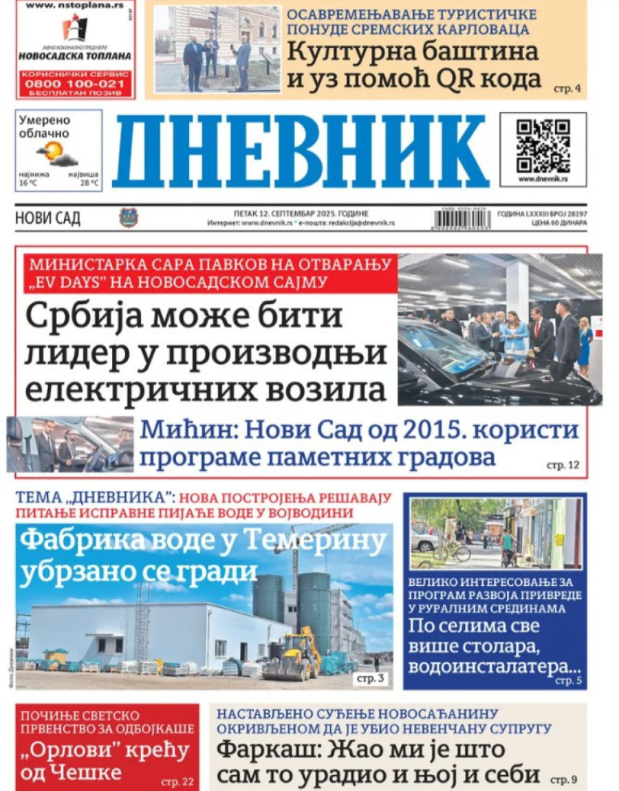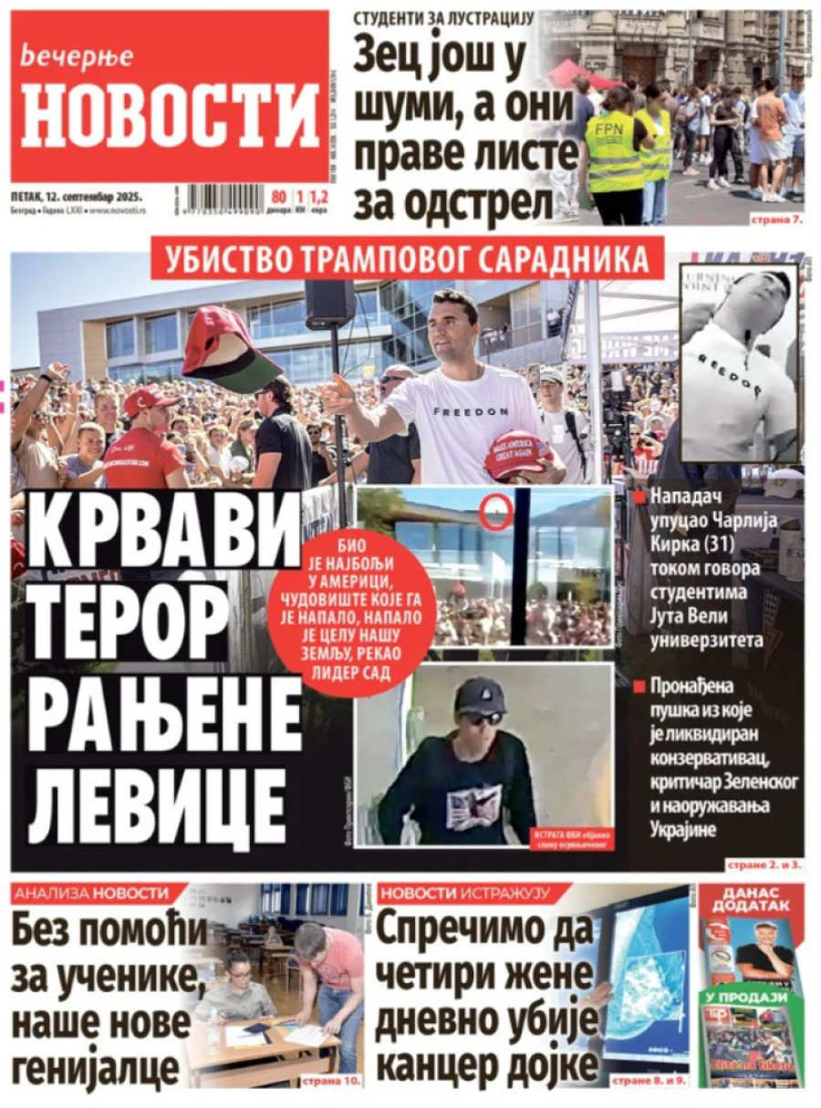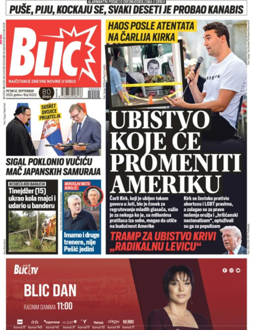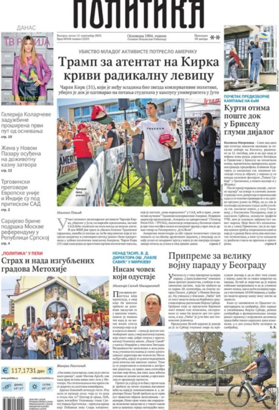 Naslovne strane dnevnih novina: Prelistavanje štampe za 12. septembar 2025. godine