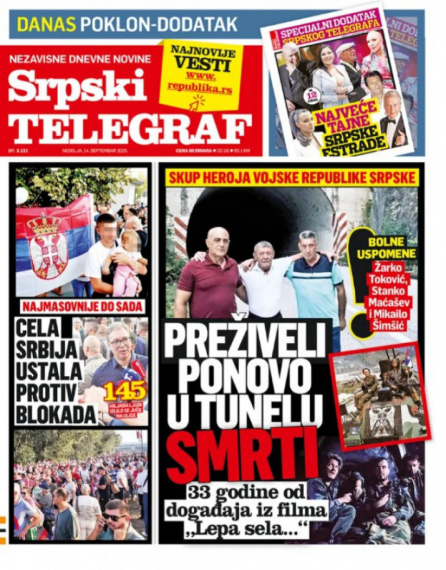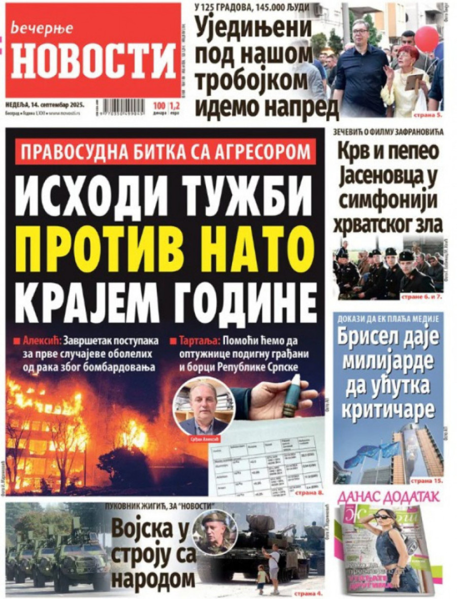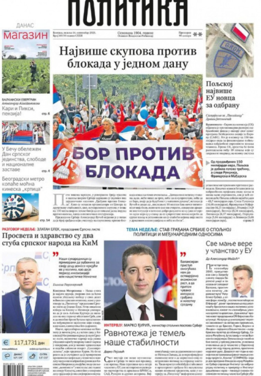 Naslovne strane dnevnih novina: Prelistavanje štampe za 14. septembar 2025. godine