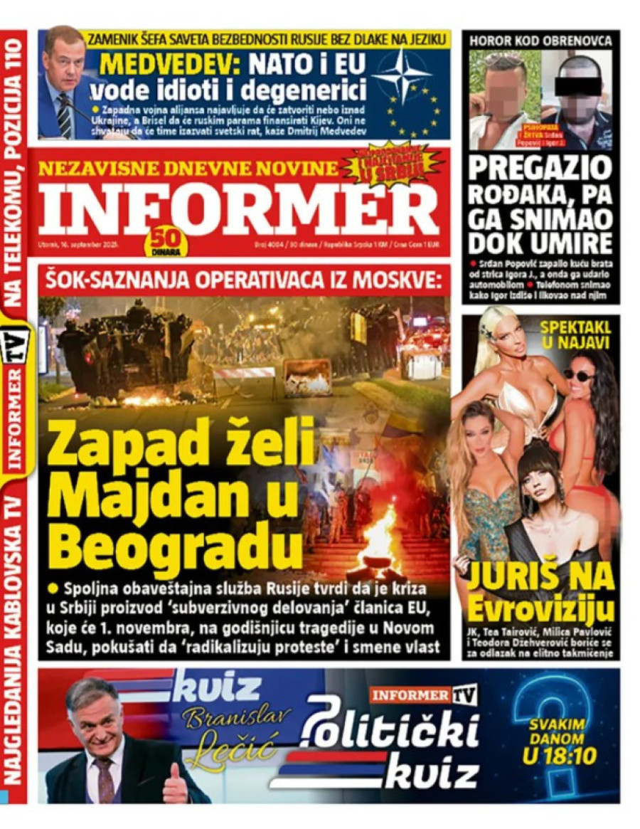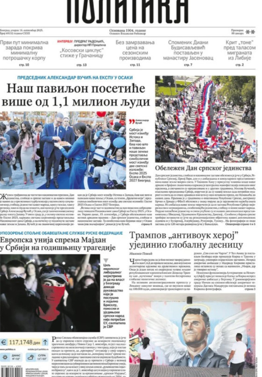 Naslovne strane dnevnih novina: Prelistavanje štampe za 16. septembar 2025. godine