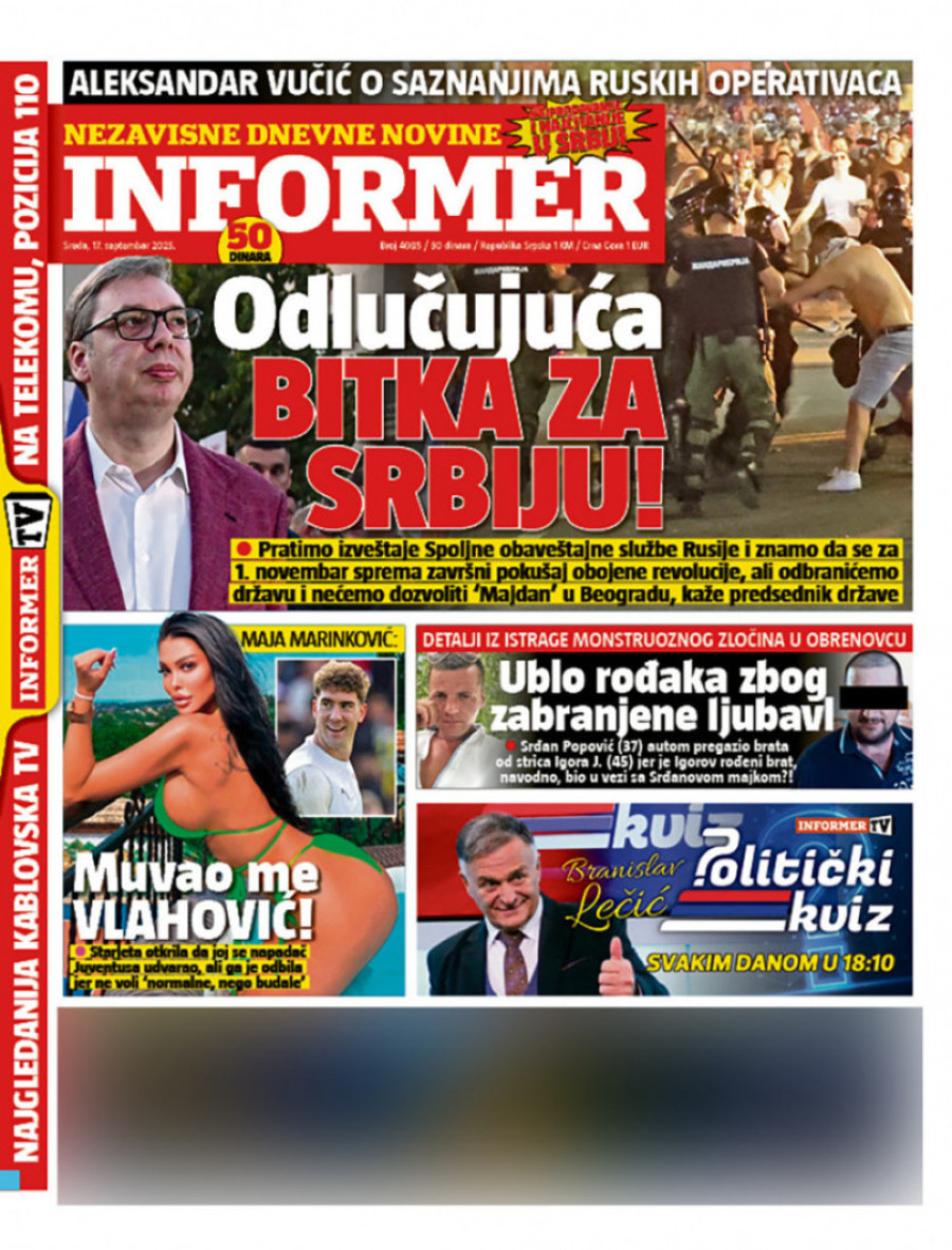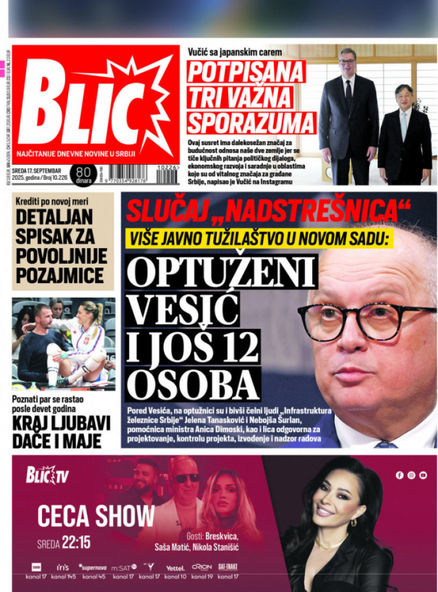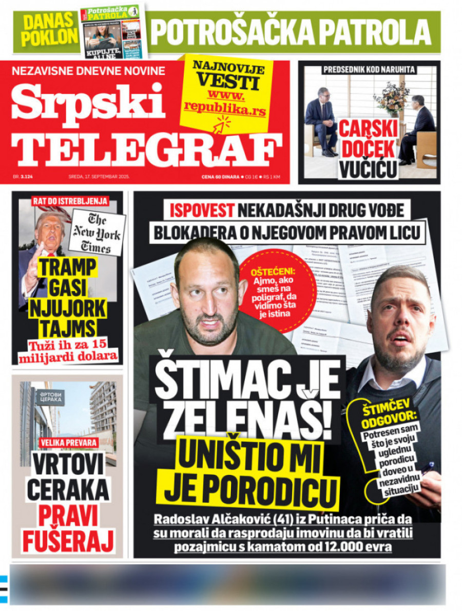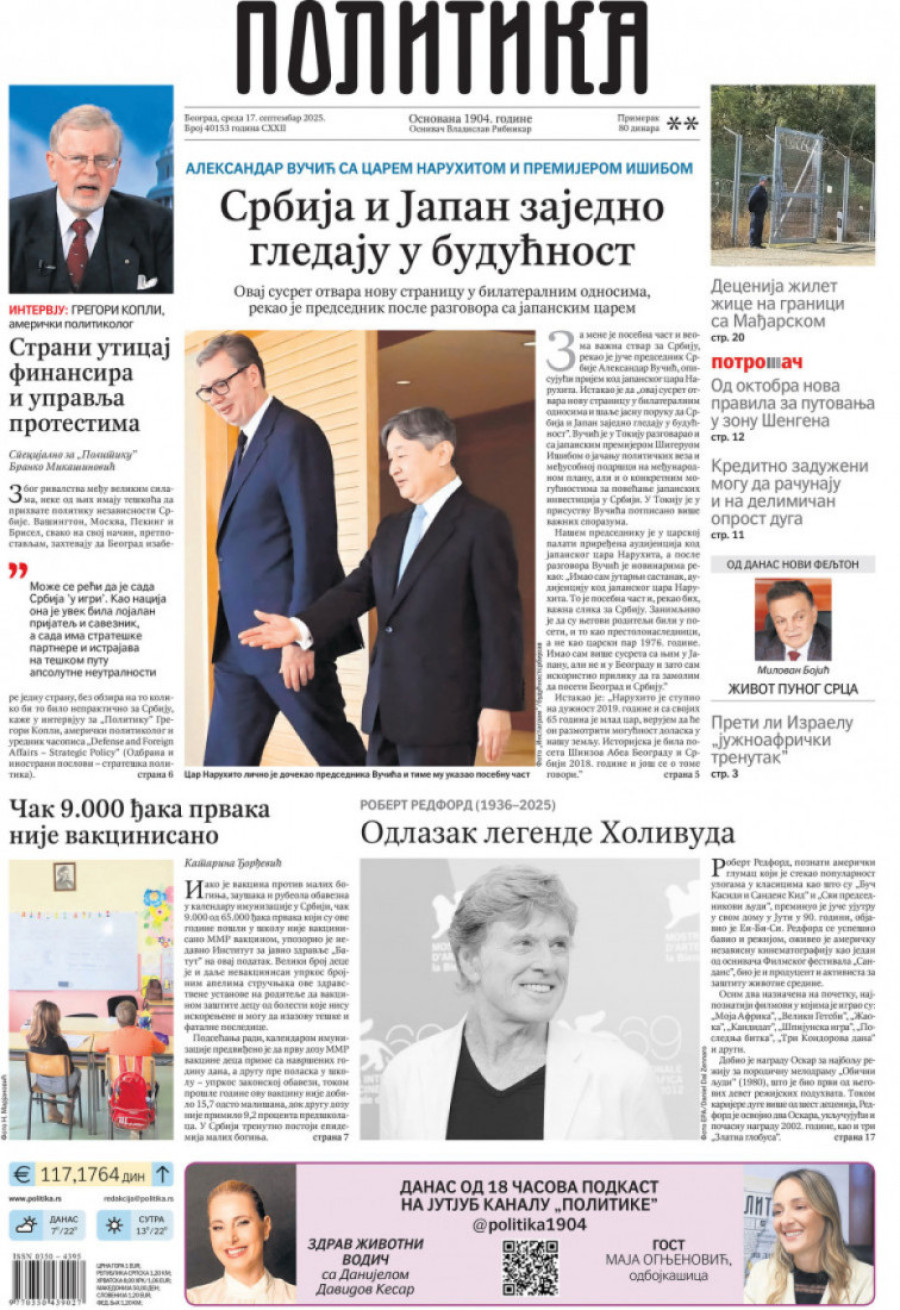 Naslovne strane dnevnih novina: Prelistavanje štampe za 17. septembar 2025. godine