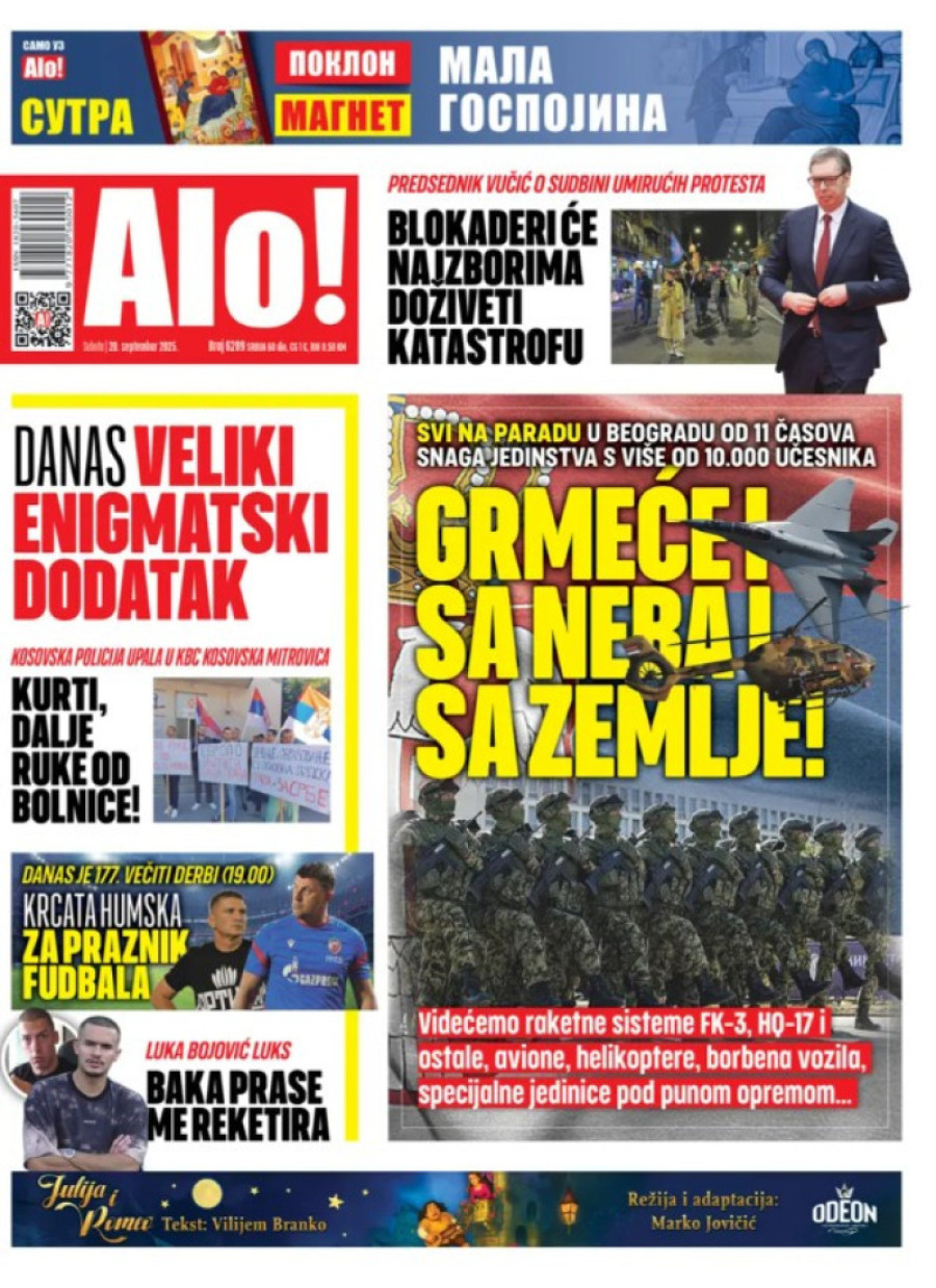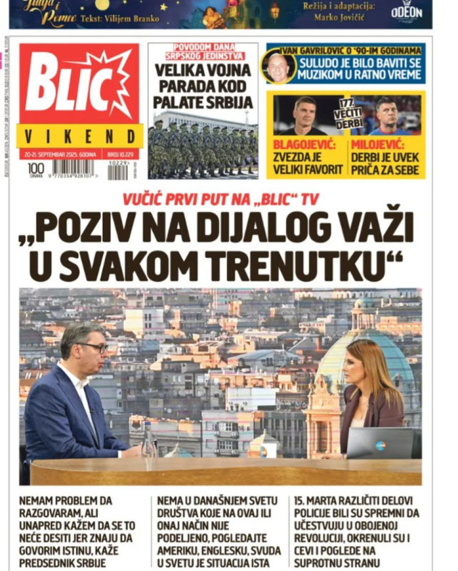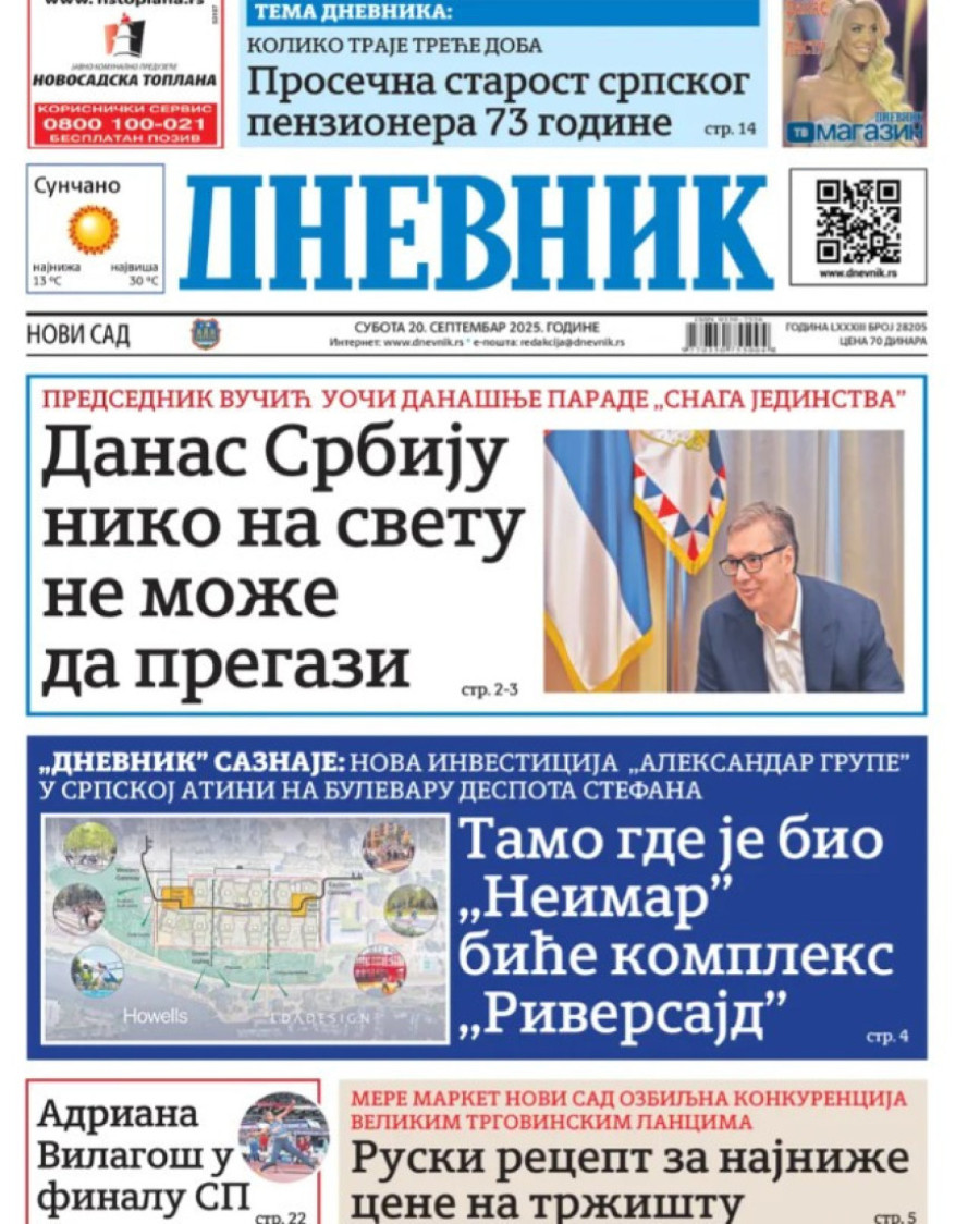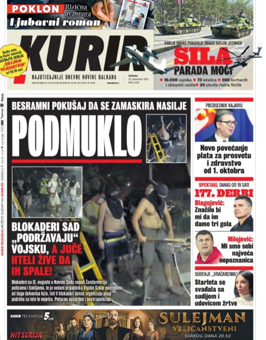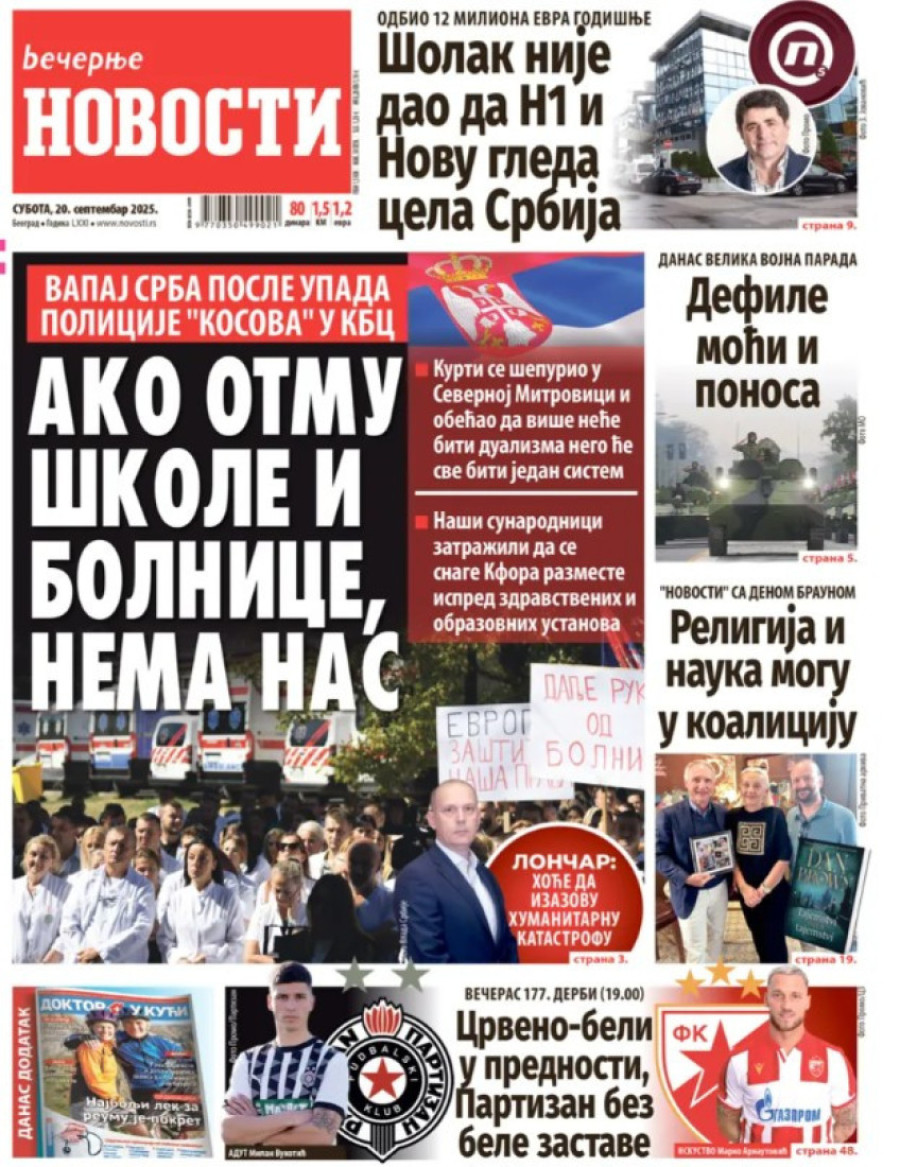 Naslovne strane dnevnih novina: Prelistavanje štampe za 20. septembar 2025. godine