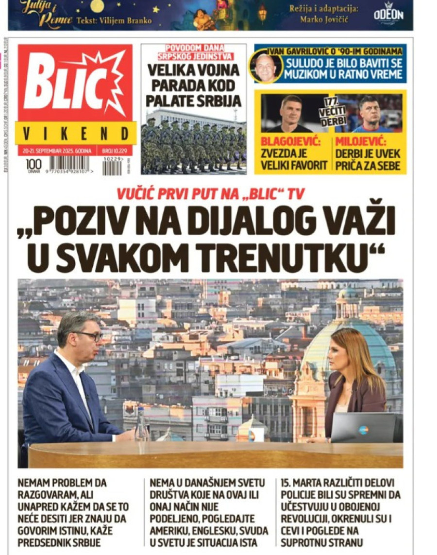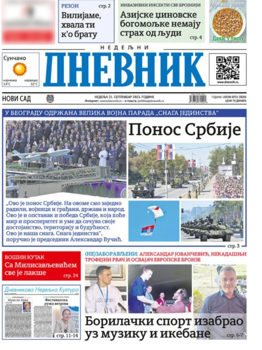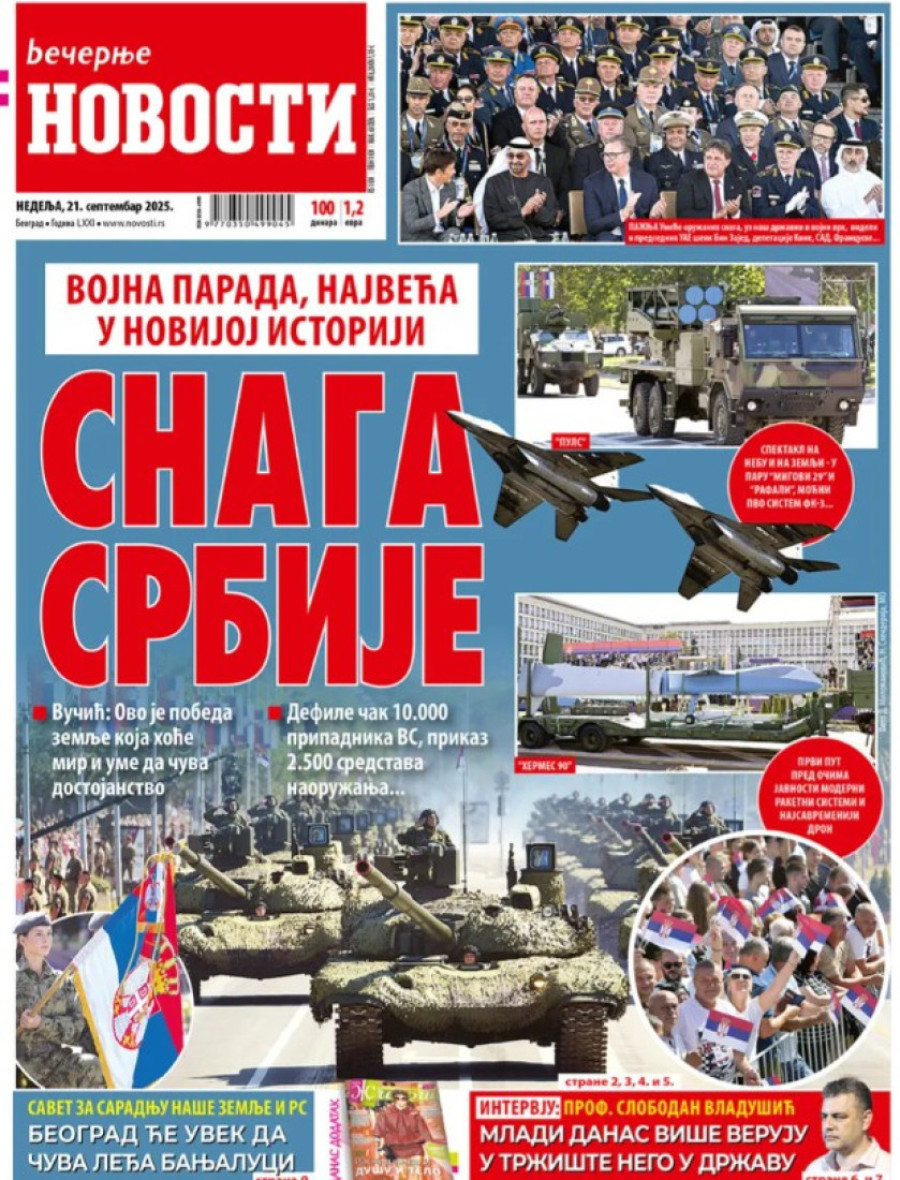 Naslovne strane dnevnih novina: Prelistavanje štampe za 21. septembar 2025. godine