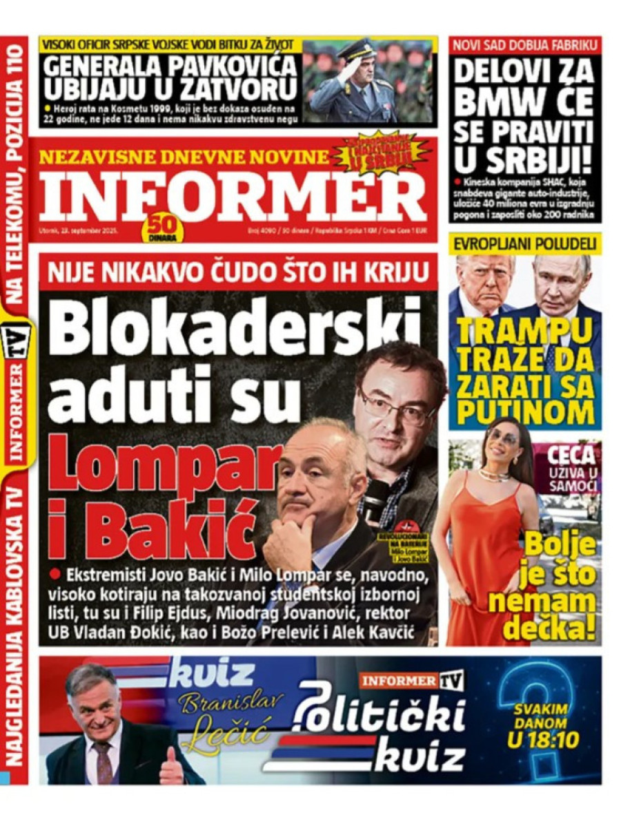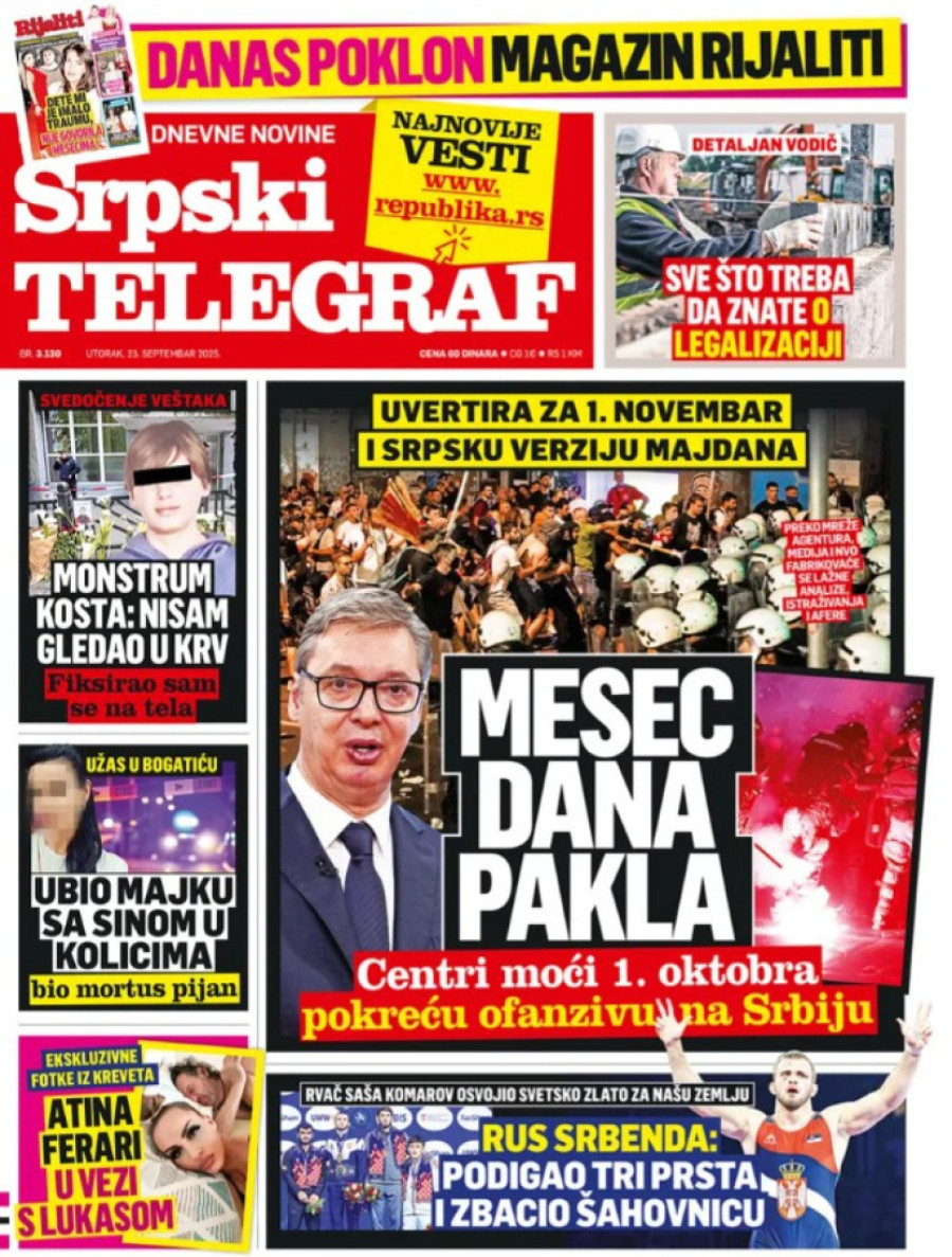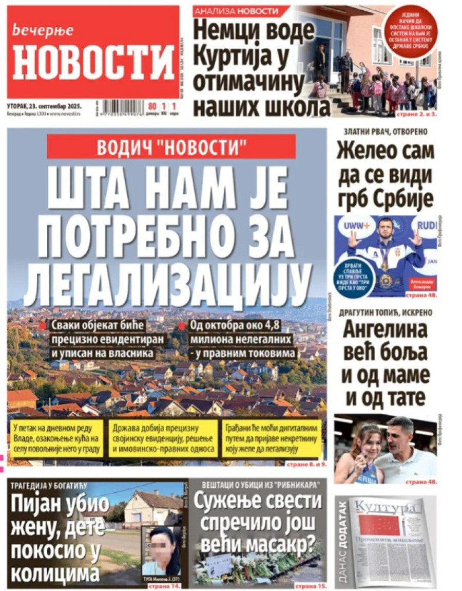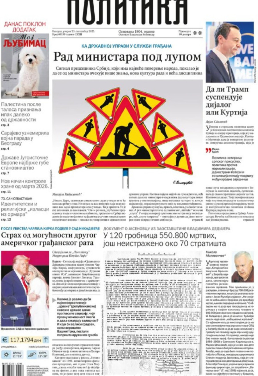 Naslovne strane dnevnih novina: Prelistavanje štampe za 23. septembar 2025. godine