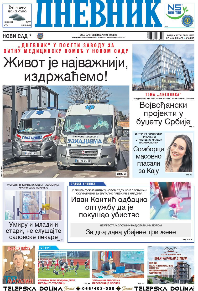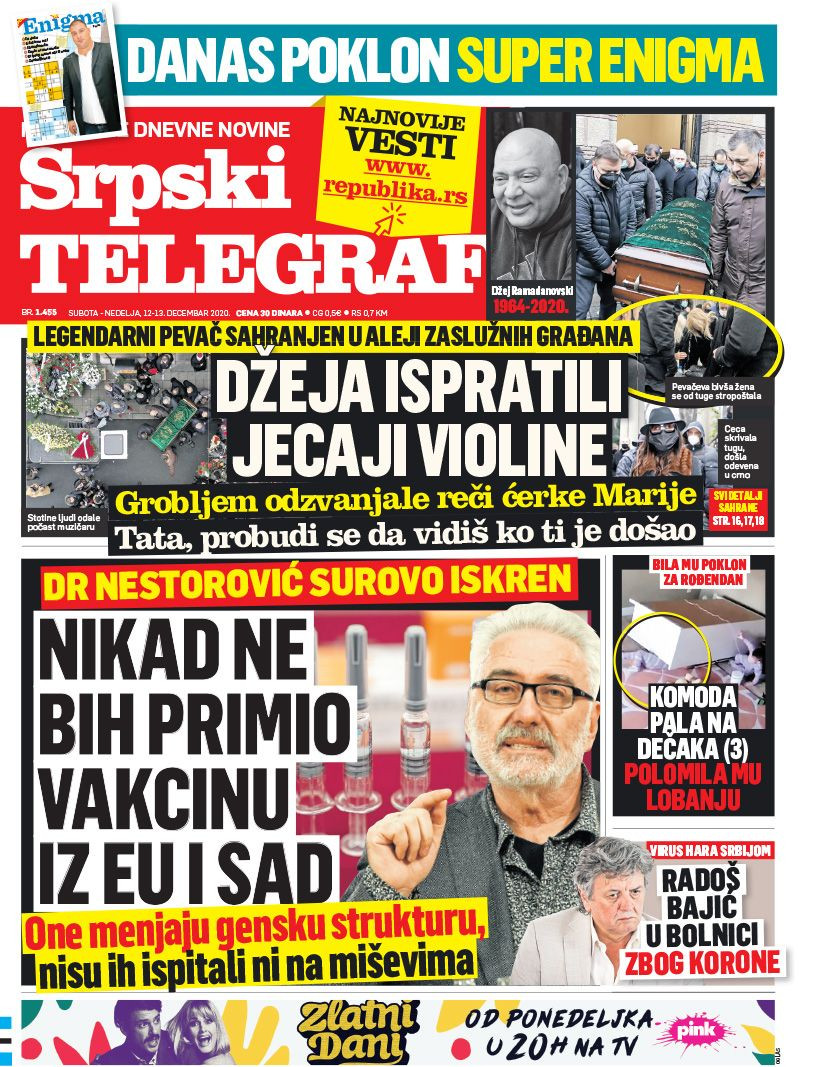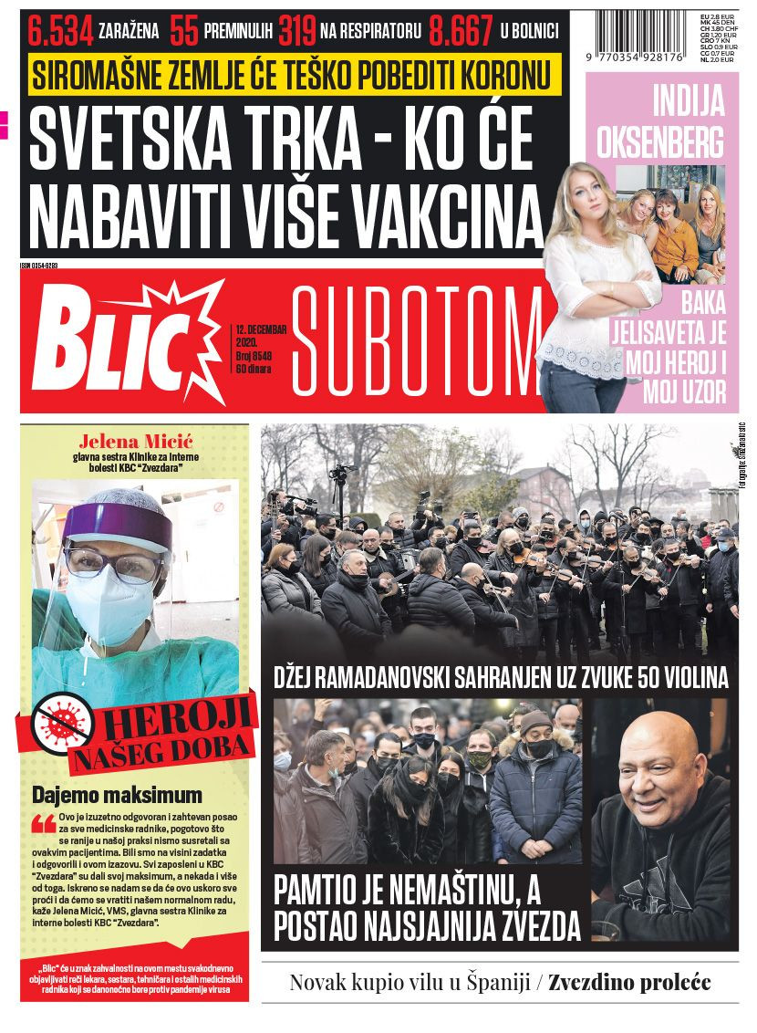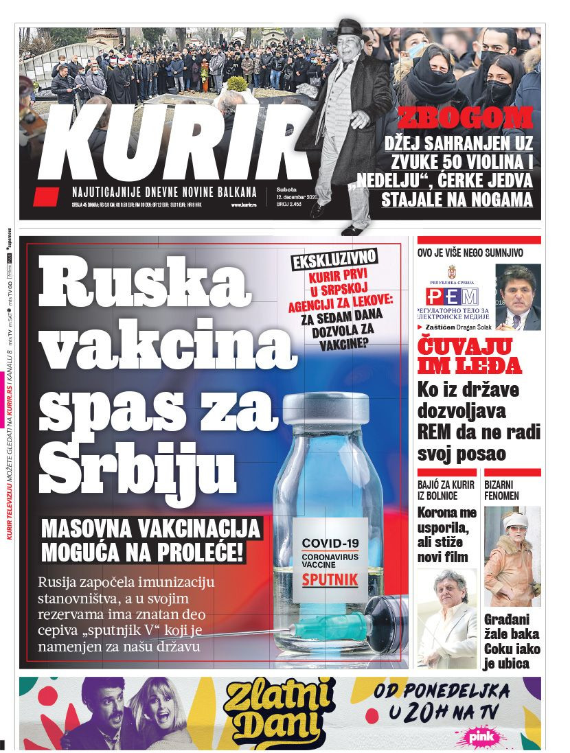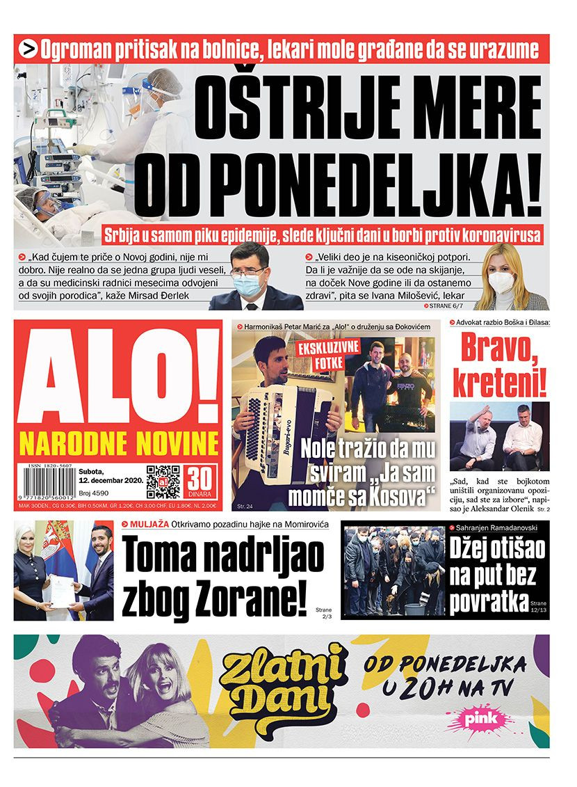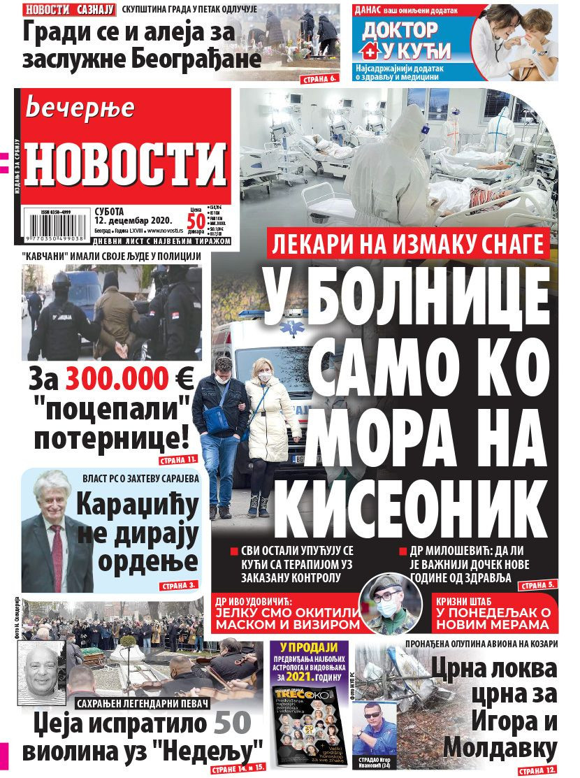 Dnevne novine u Srbiji za subotu, 12. decembar 2020. godine, na naslovnim stranama pišu o brojnim aktuelnim društveno-političkim temama i donose brojne ekskluzivne priče.