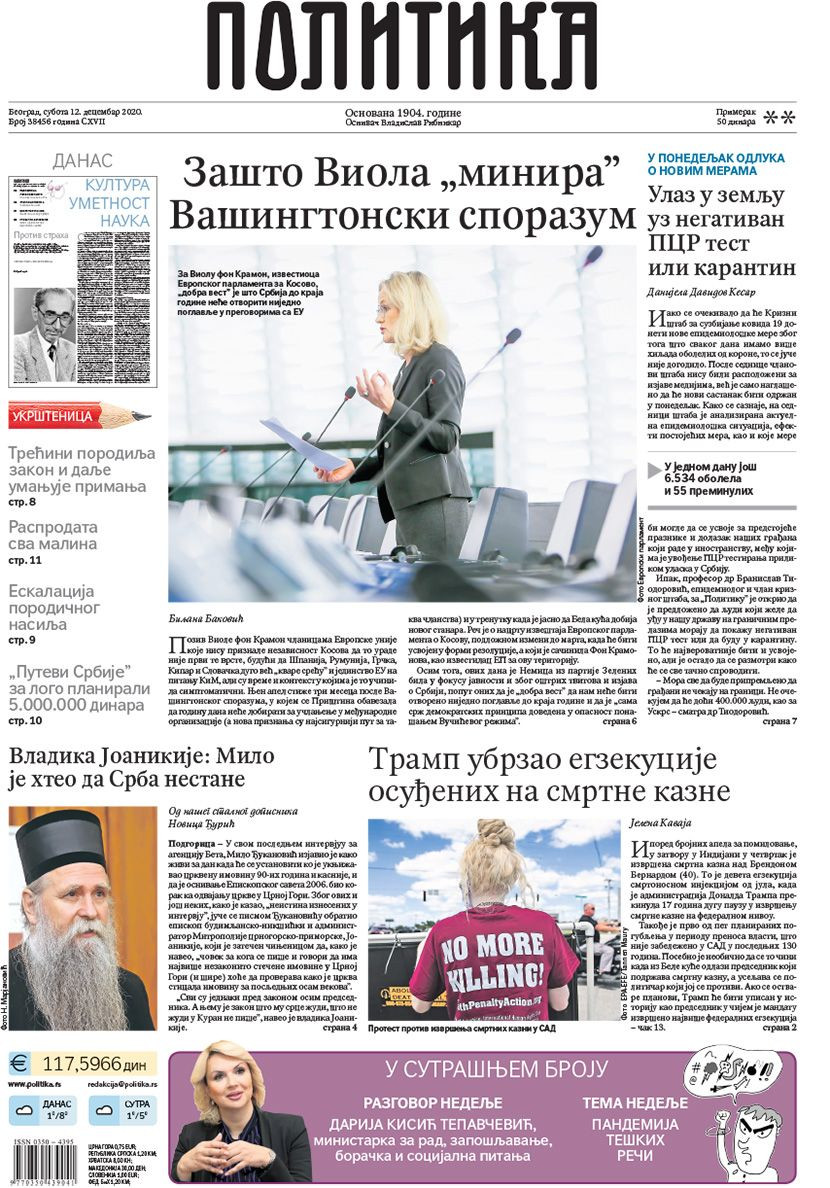 Prelistavanje štampe za subotu, 12. decembar 2020. godine