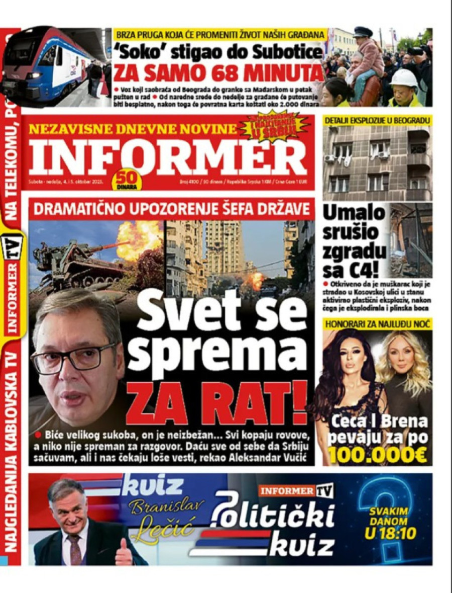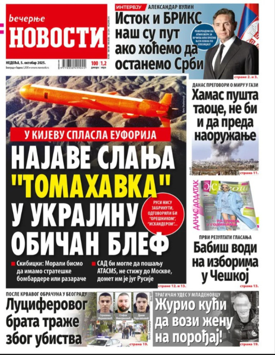 Naslovne strane dnevnih novina: Prelistavanje štampe za 5. oktobar 2025. godine