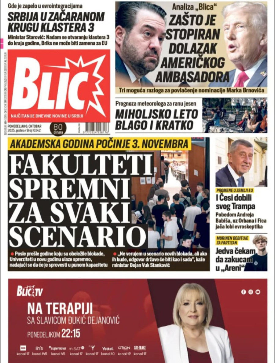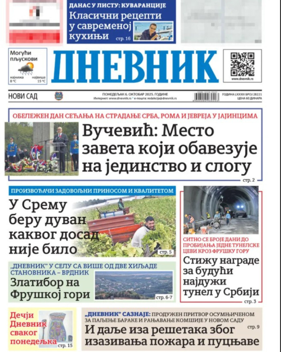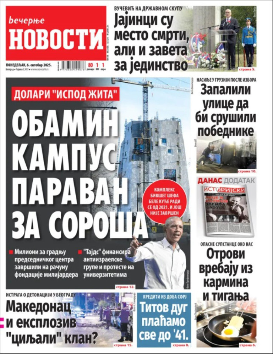 Naslovne strane dnevnih novina: Prelistavanje štampe za 6. oktobar 2025. godine