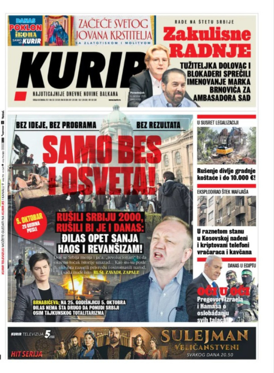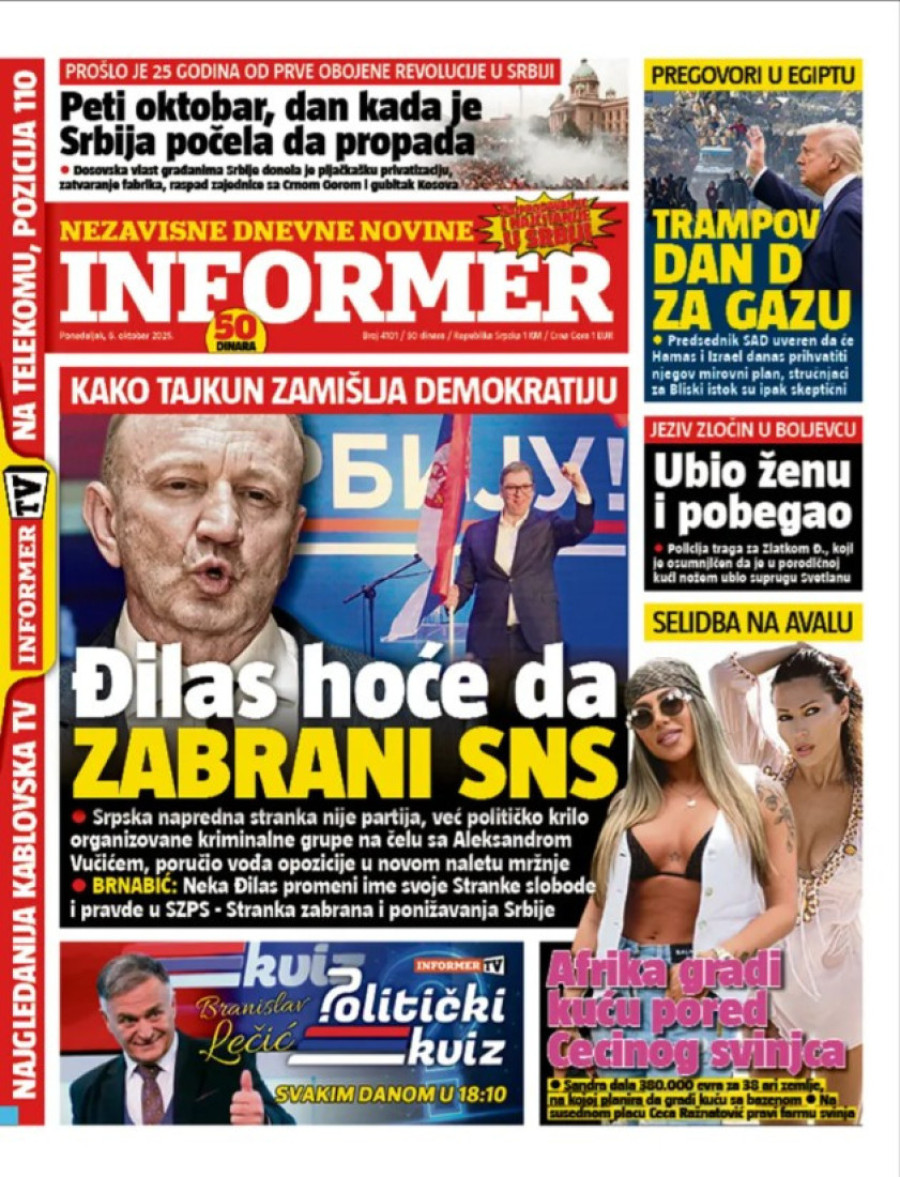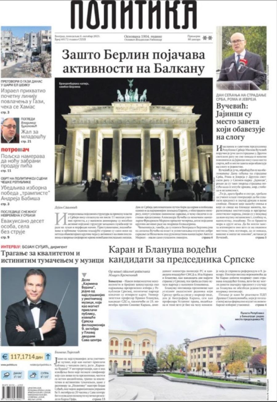 Naslovne strane dnevnih novina: Prelistavanje štampe za 6. oktobar 2025. godine
