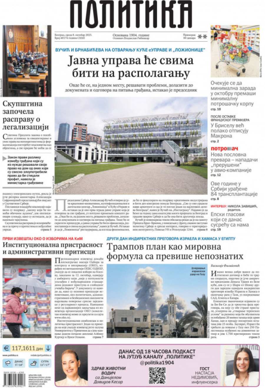 Naslovne strane dnevnih novina: Prelistavanje štampe za 8. oktobar 2025. godine