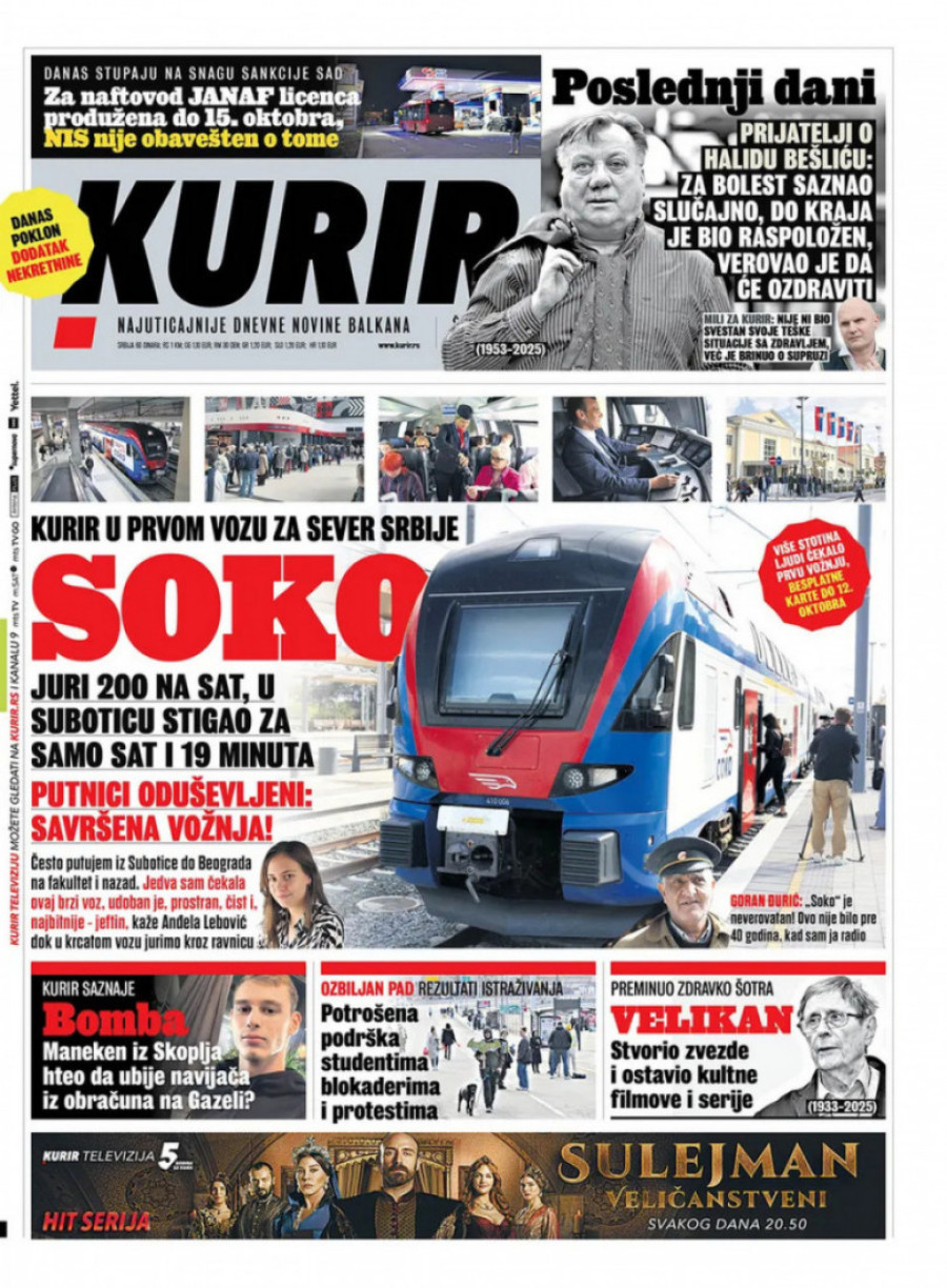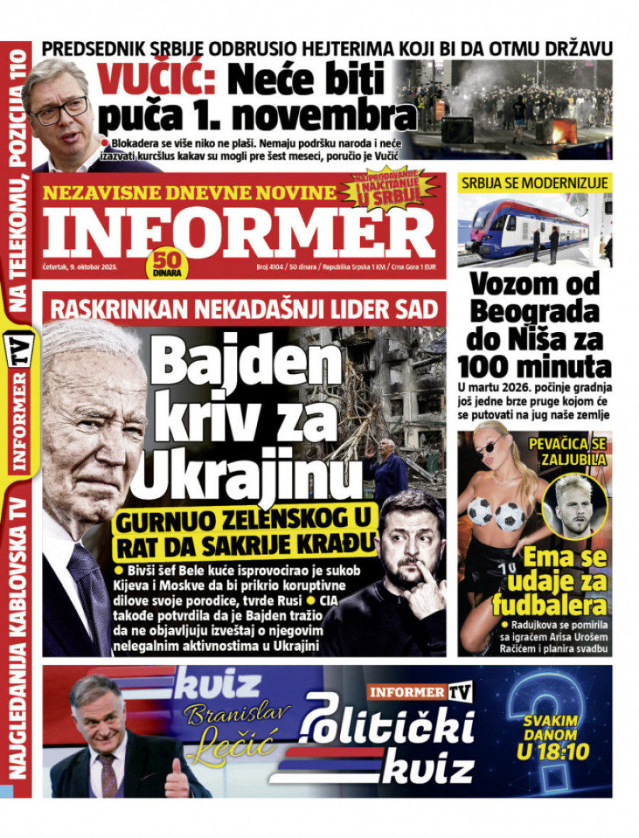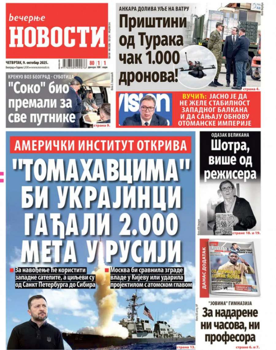 Naslovne strane dnevnih novina: Prelistavanje štampe za 9. oktobar 2025. godine