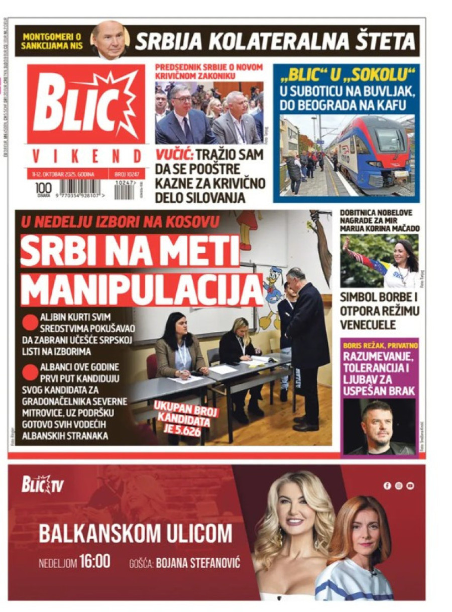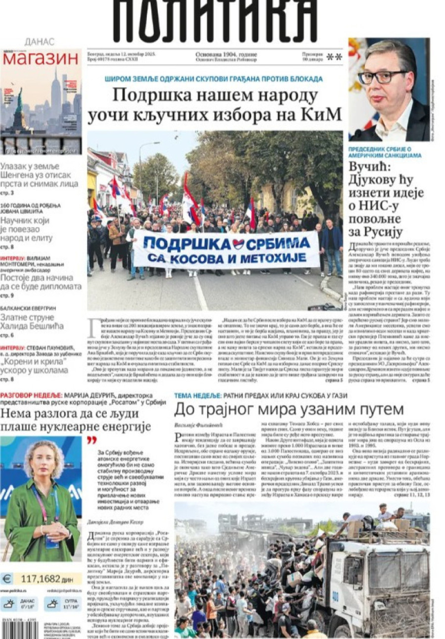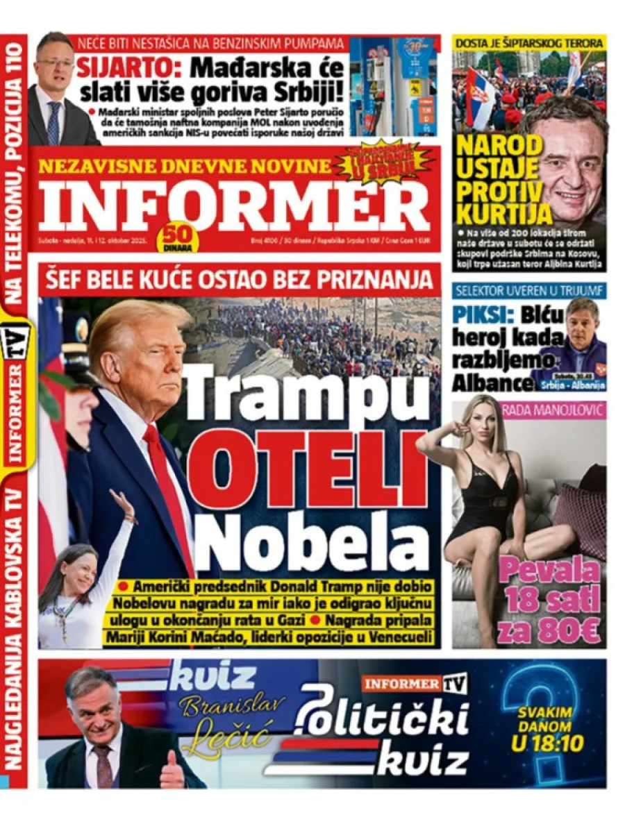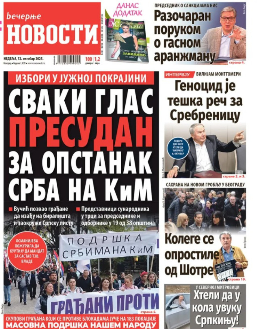 Naslovne strane dnevnih novina: Prelistavanje štampe za 12. oktobar 2025. godine