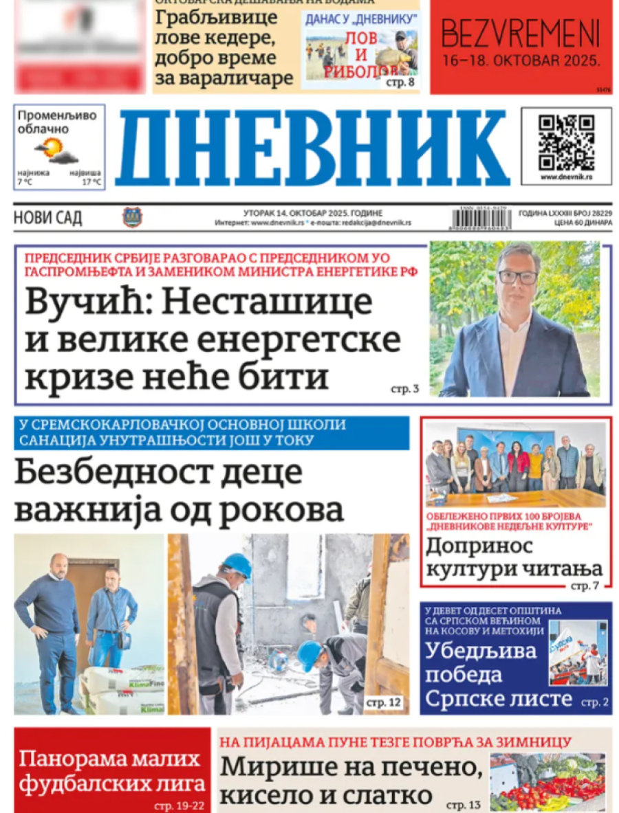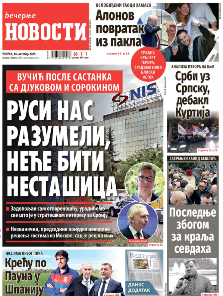 Naslovne strane dnevnih novina: Prelistavanje štampe za 14. oktobar 2025. godine