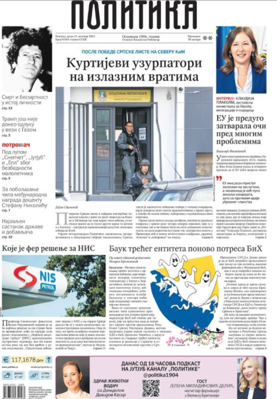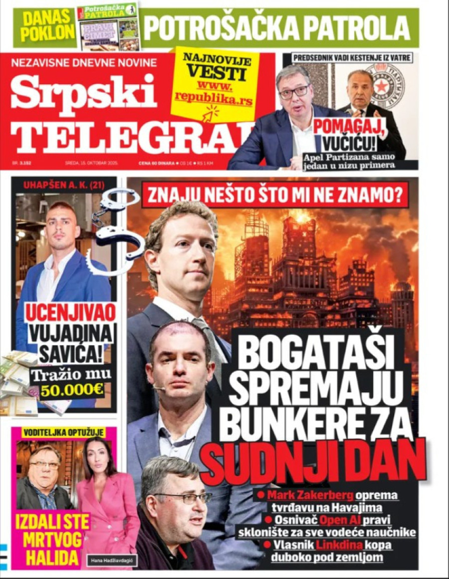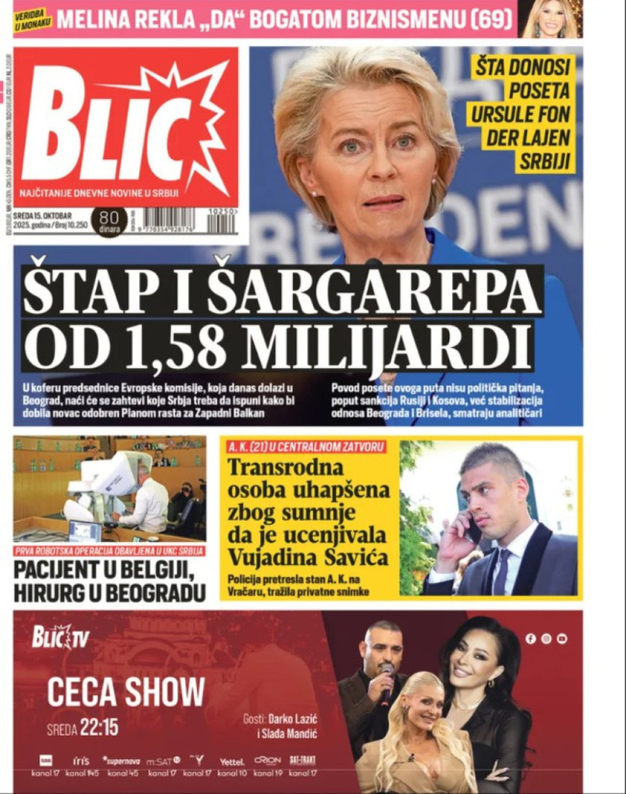 Naslovne strane dnevnih novina: Prelistavanje štampe za 15. oktobar 2025. godine