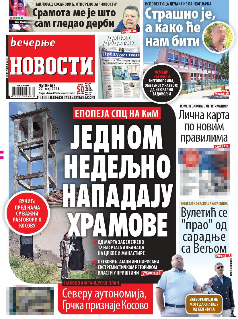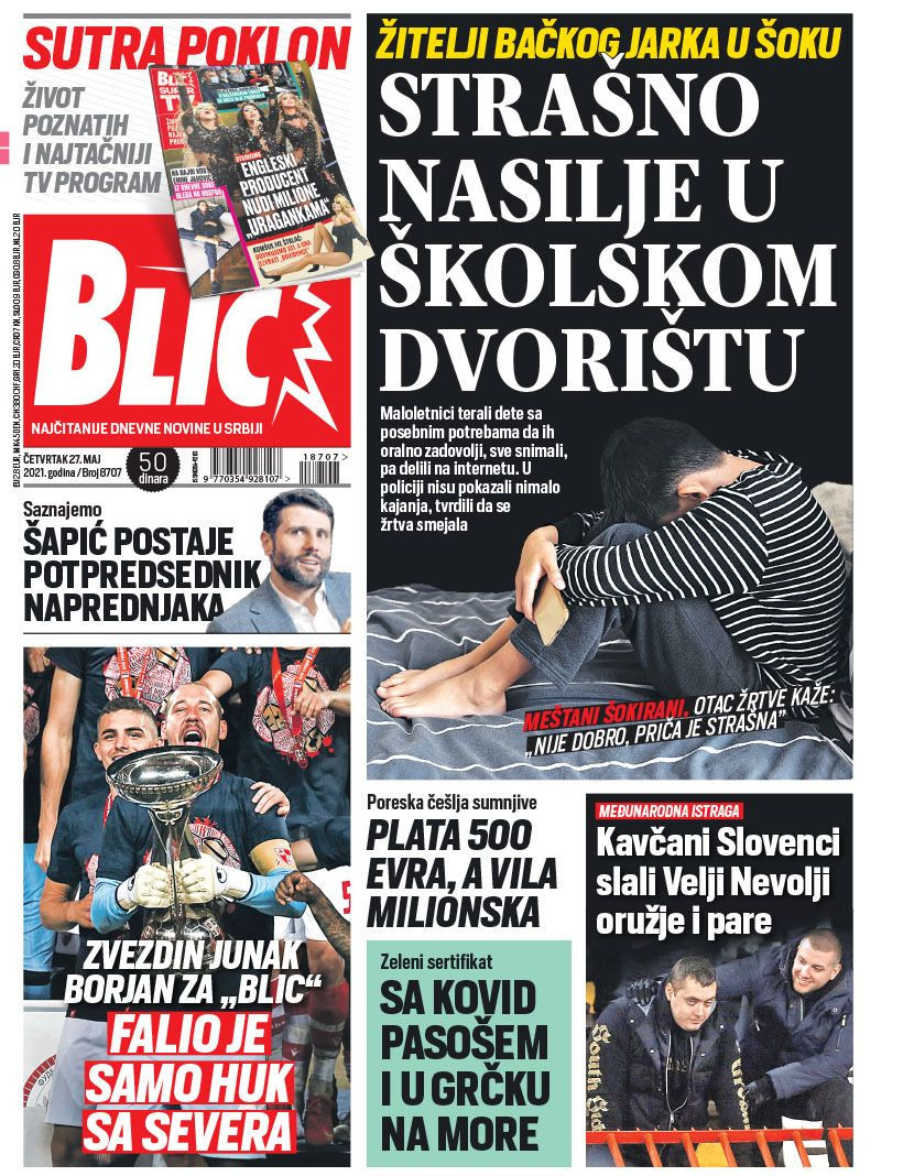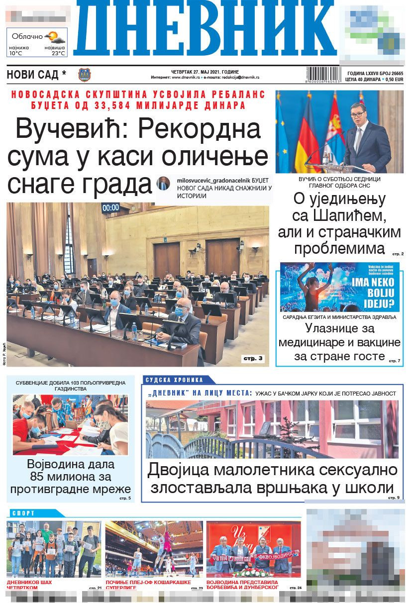 Dnevne novine u Srbiji za četvrtak, 27. maj 2021. godine, na naslovnim stranama najavljuju brojne aktuelne društveno-političke teme i donose ekskluzivne priče.