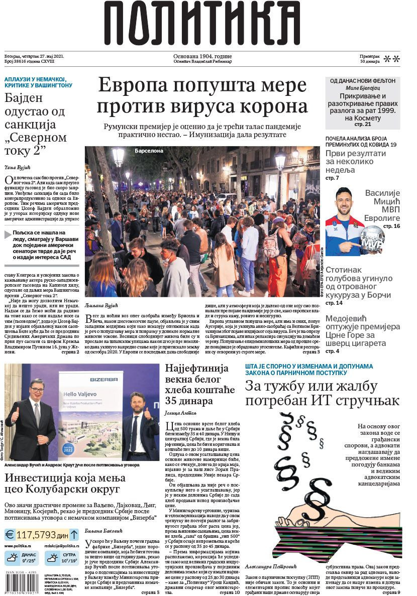 Prelistavanje štampe za četvrtak, 27. maj 2021. godine