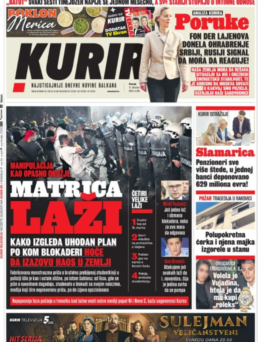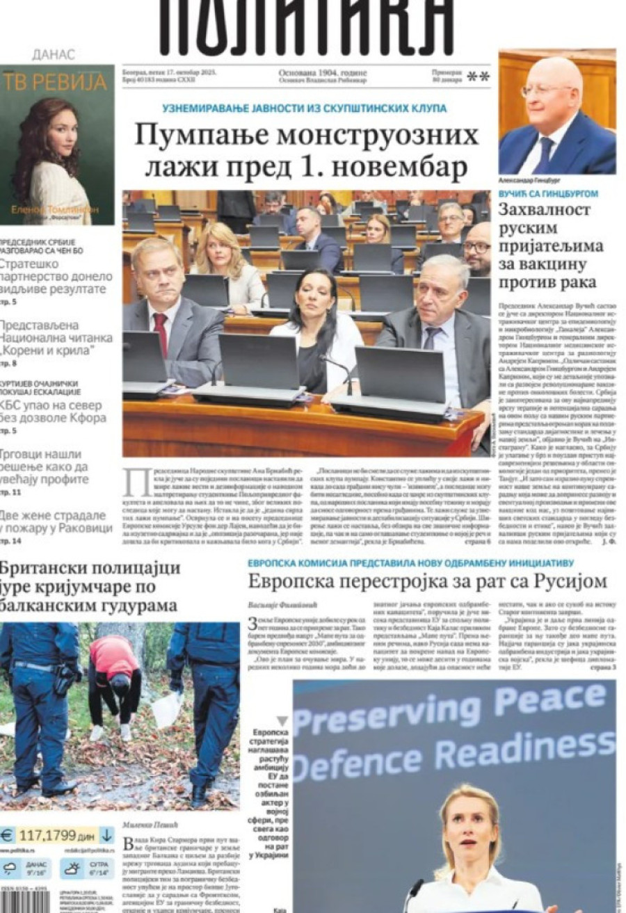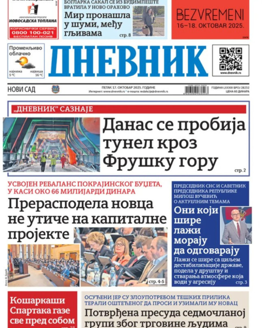 Naslovne strane dnevnih novina: Prelistavanje štampe za 17. oktobar 2025. godine