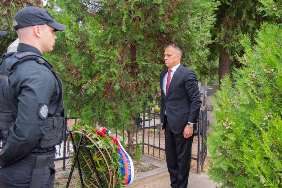 Direktor BIA Vladimir Orlić i predsednica Narodne skupštine Srbije Ana Brnabić, kao izaslanik predsednika Srbije Aleksandra Vučića, odali su poštu nastradalim pripadnicima Agencije polaganjem venca ispred Memorijalnog zida.