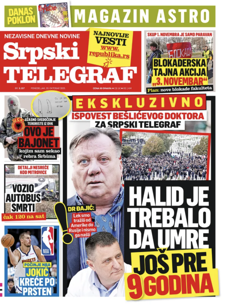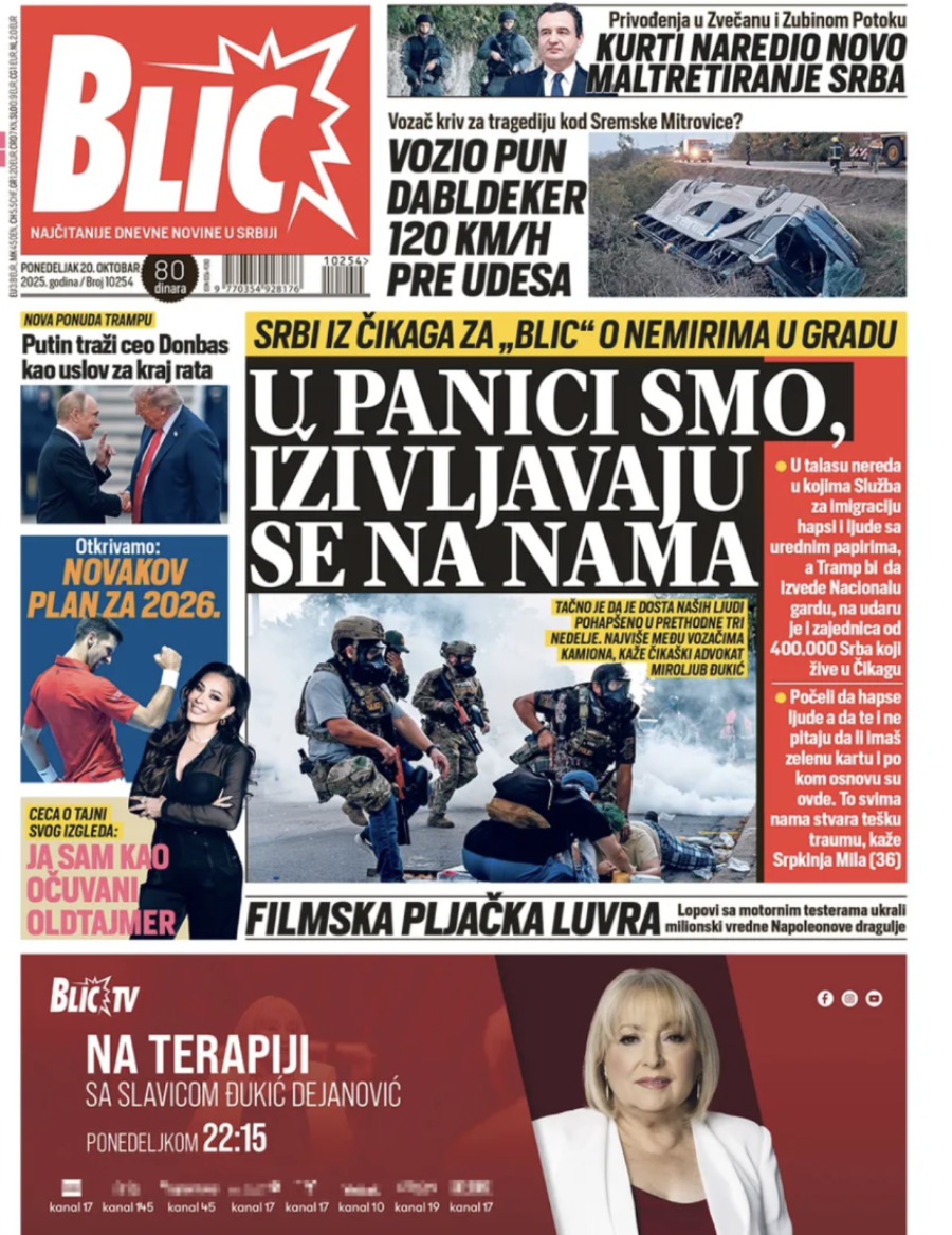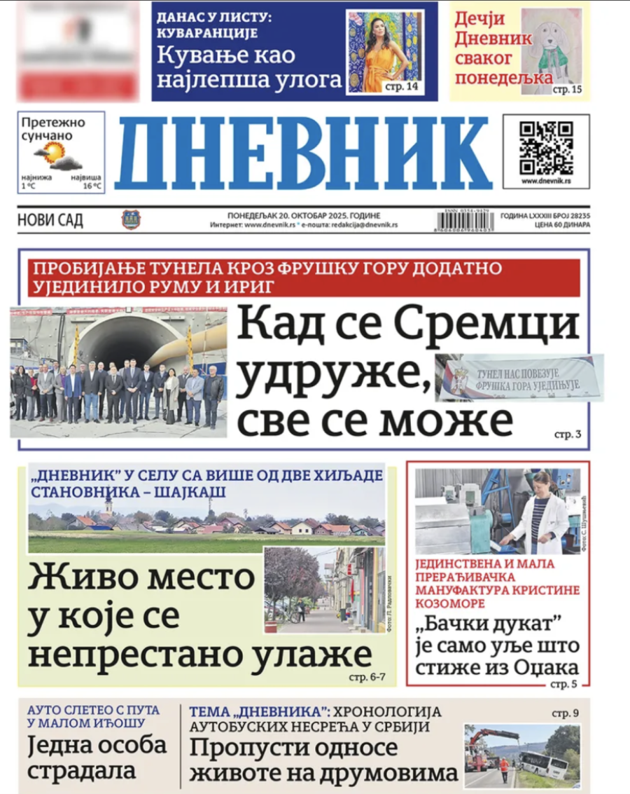 Naslovne strane dnevnih novina: Prelistavanje štampe za 20. oktobar 2025. godine