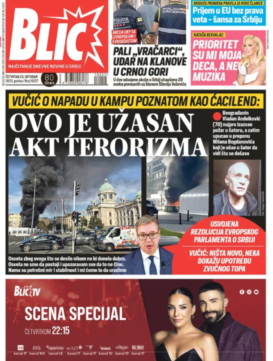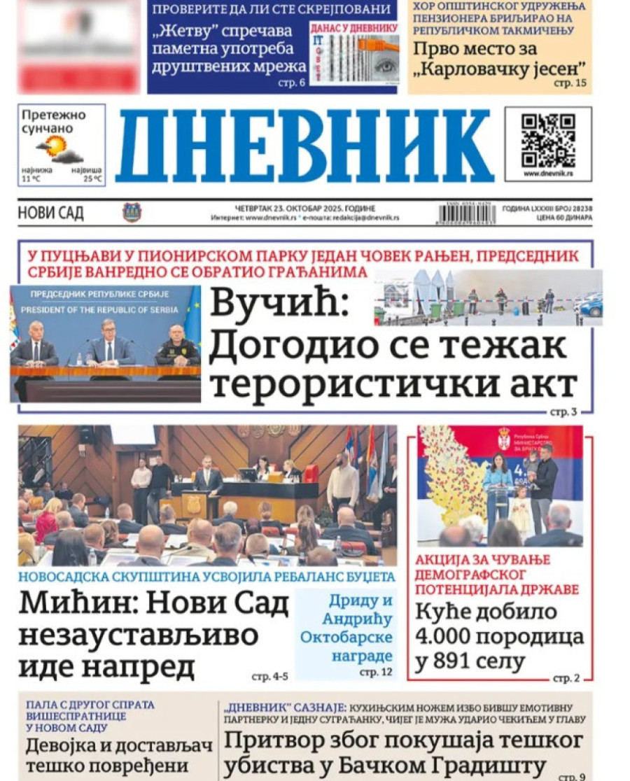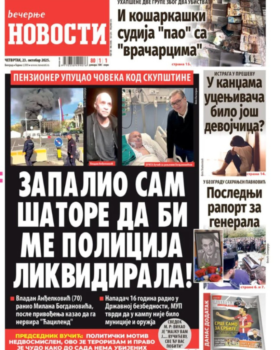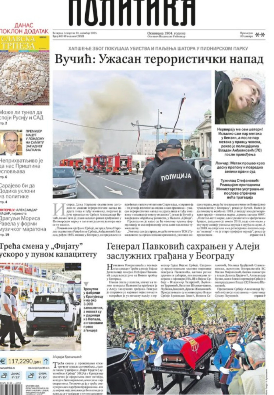 Naslovne strane dnevnih novina: Prelistavanje štampe za 23. oktobar 2025. godine