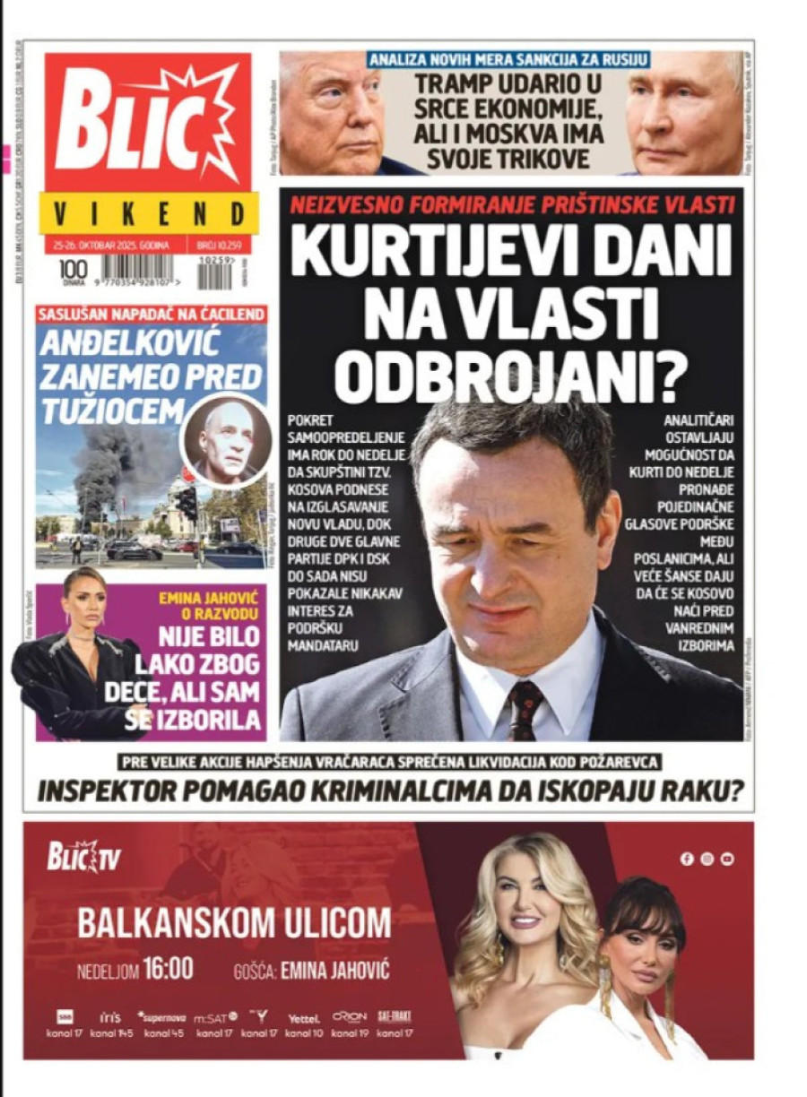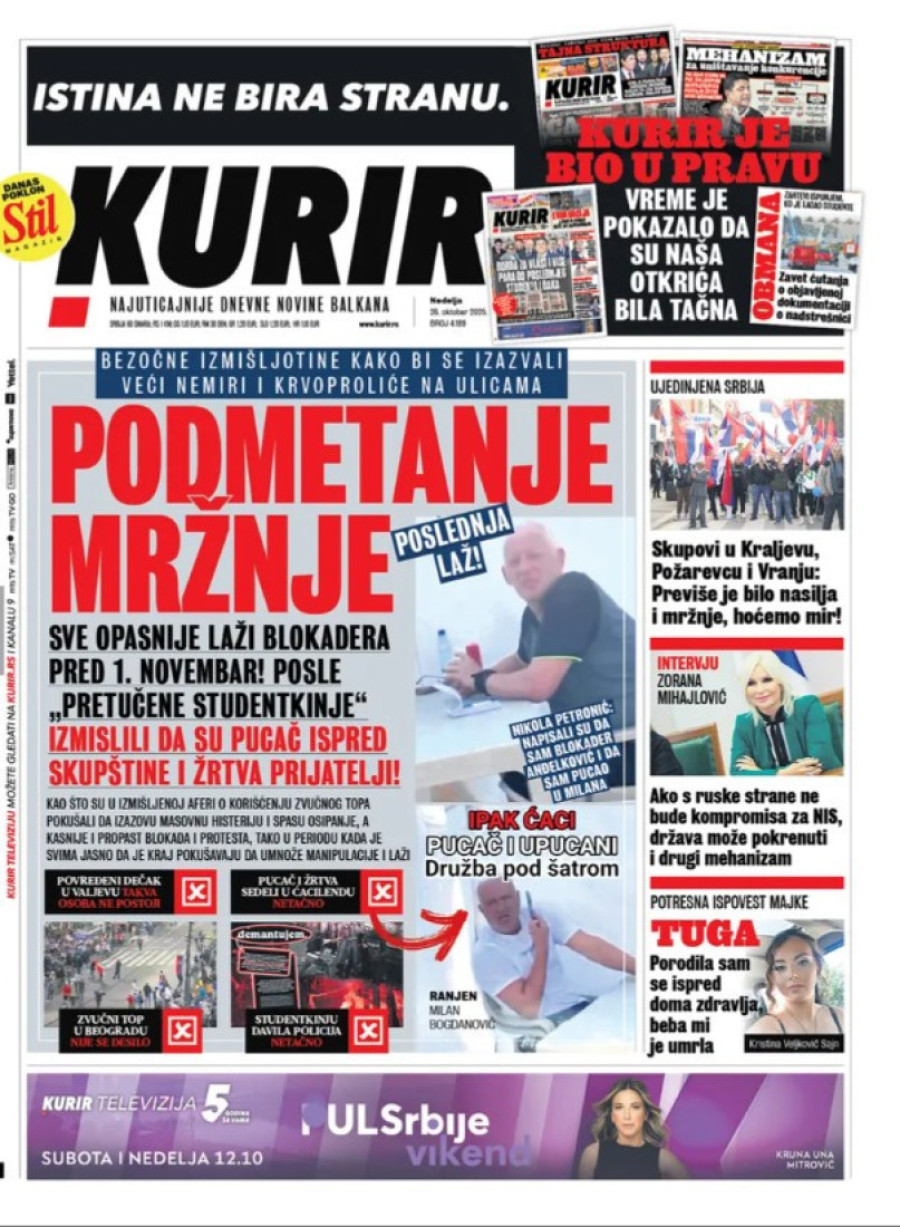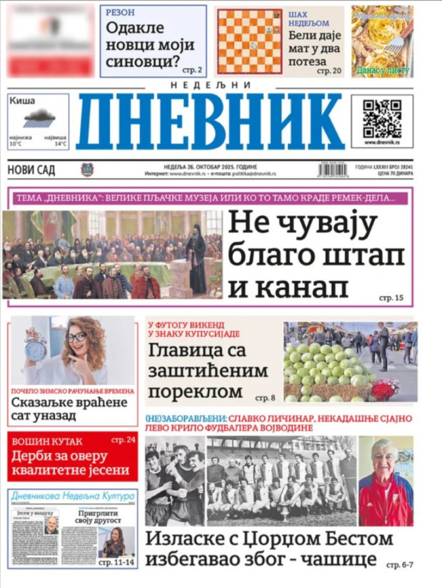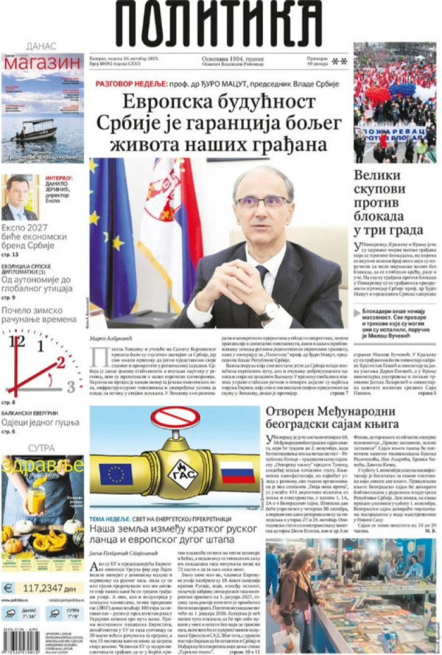 Naslovne strane dnevnih novina: Prelistavanje štampe za 26. oktobar 2025. godine