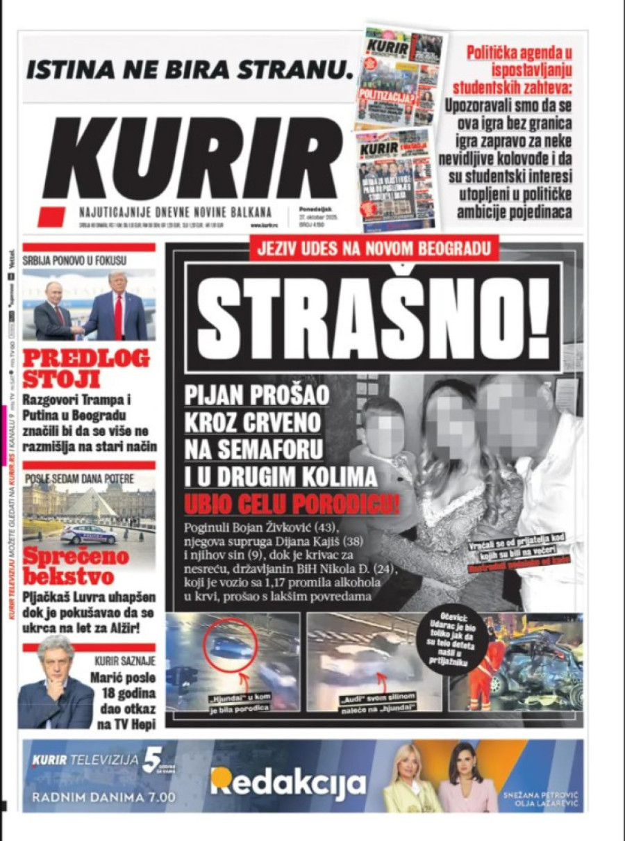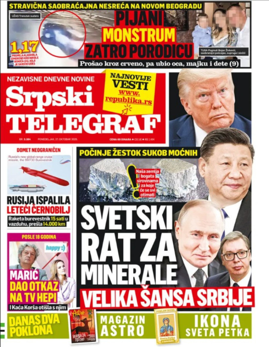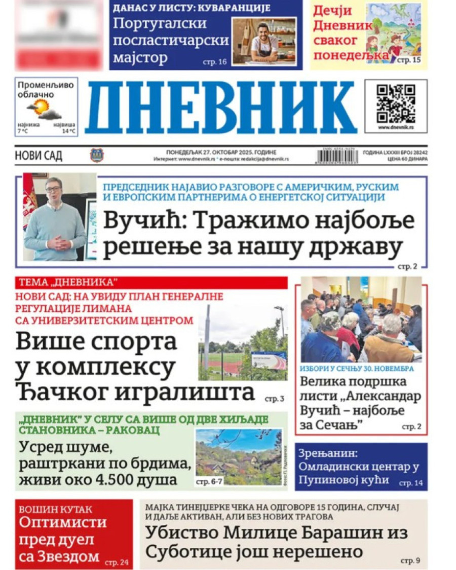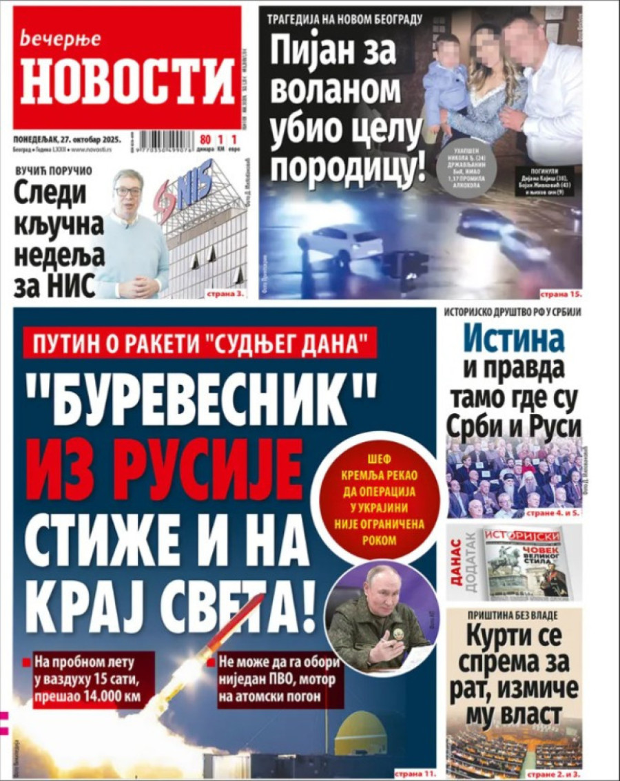 Naslovne strane dnevnih novina: Prelistavanje štampe za 27. oktobar 2025. godine