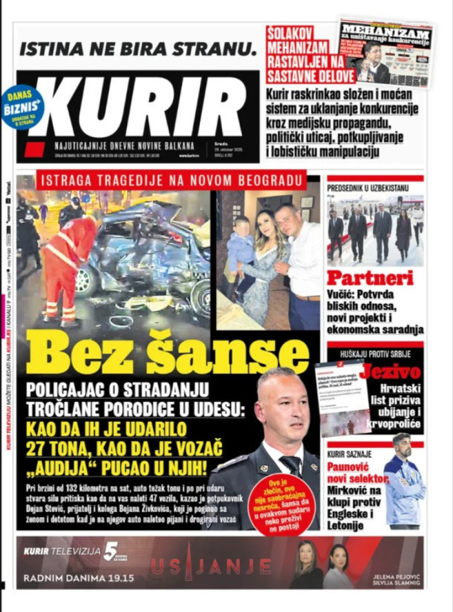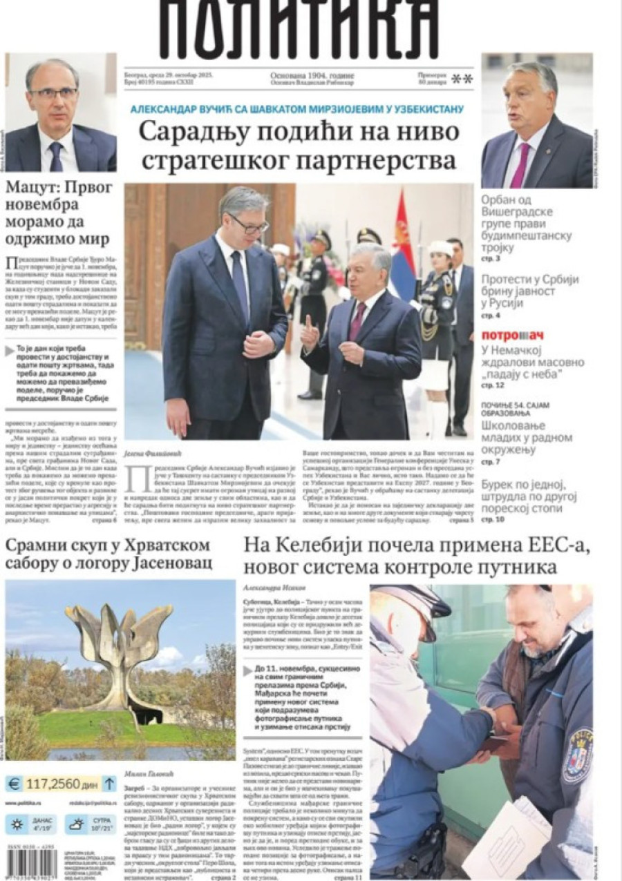 Naslovne strane dnevnih novina: Prelistavanje štampe za 29. oktobar 2025. godine