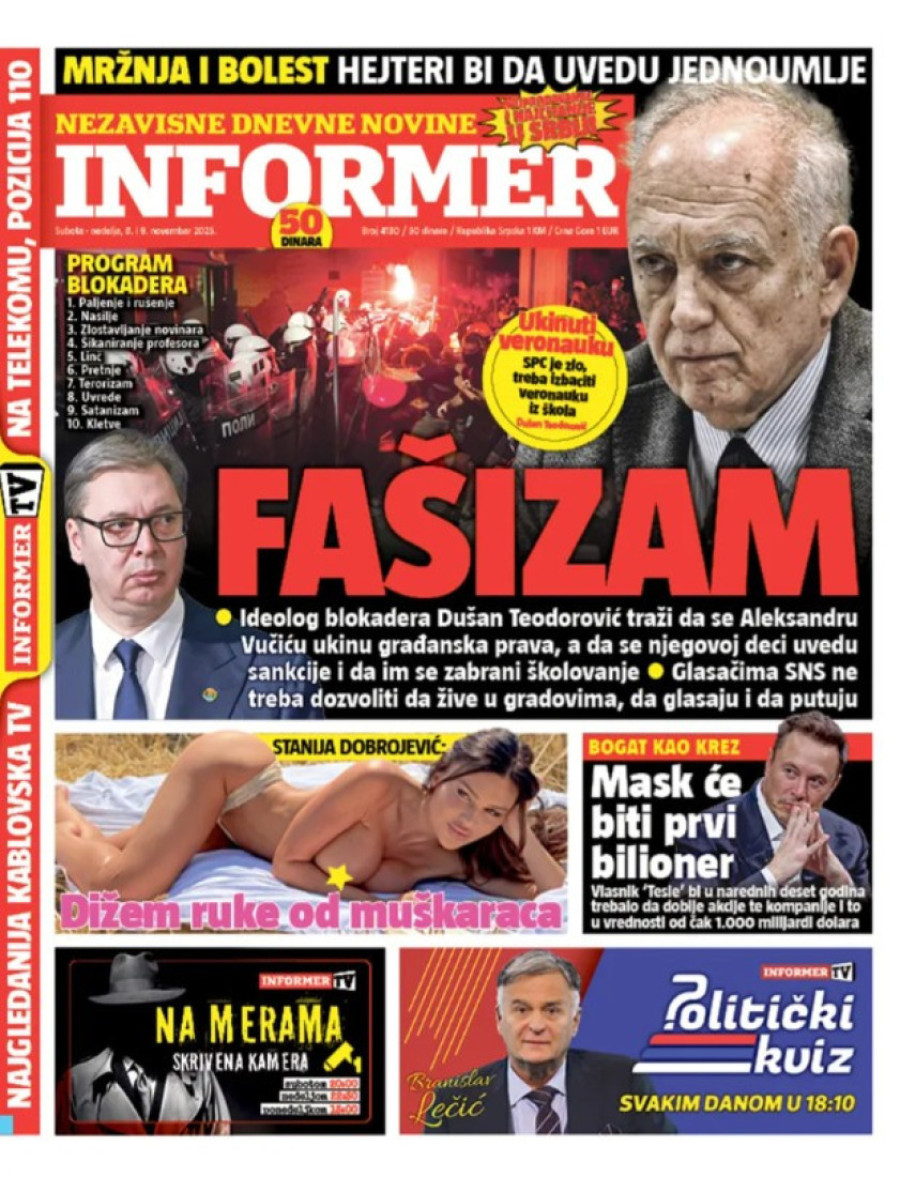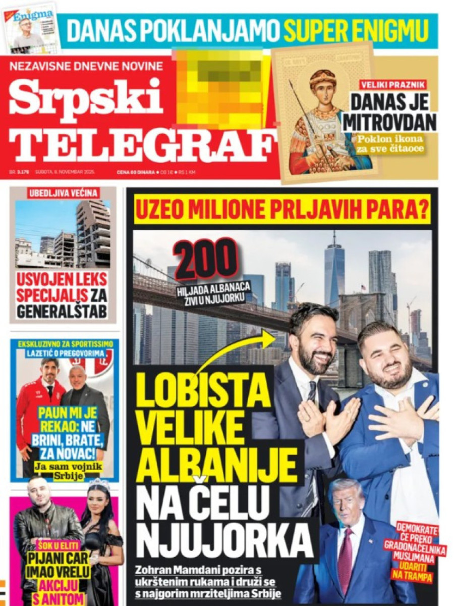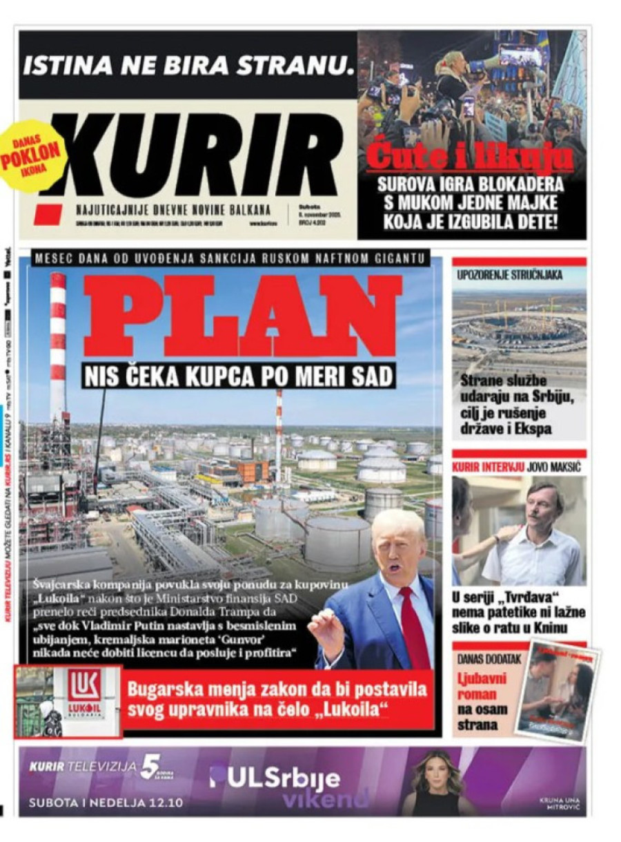 Naslovne strane dnevnih novina: Prelistavanje štampe za 8. novembar 2025. godine