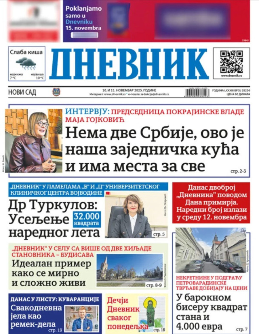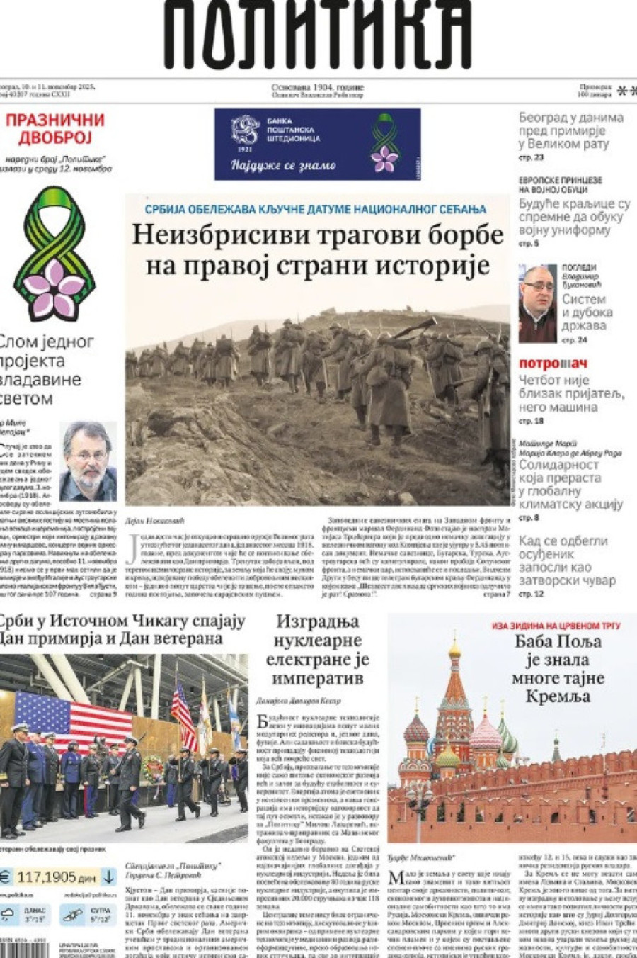 Naslovne strane dnevnih novina: Prelistavanje štampe za 10. novembar 2025. godine