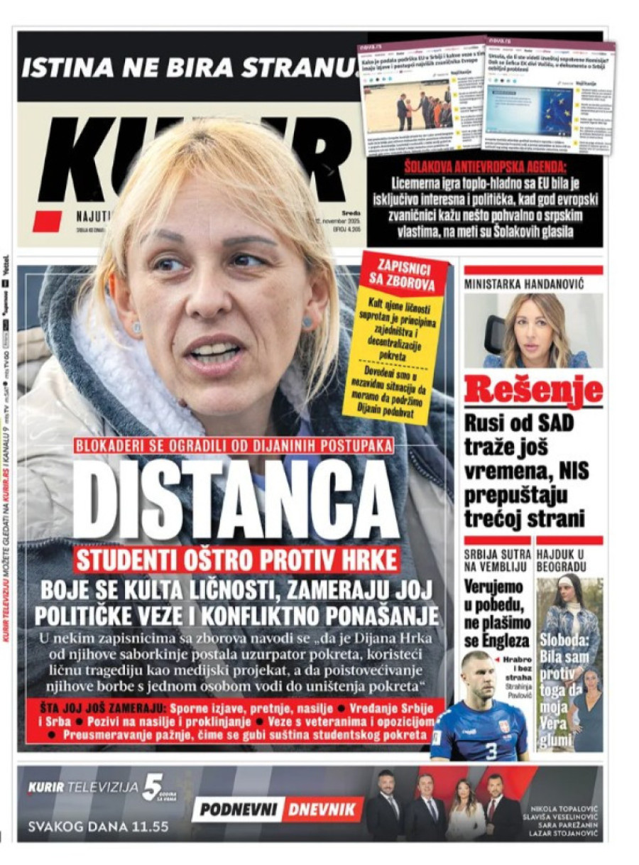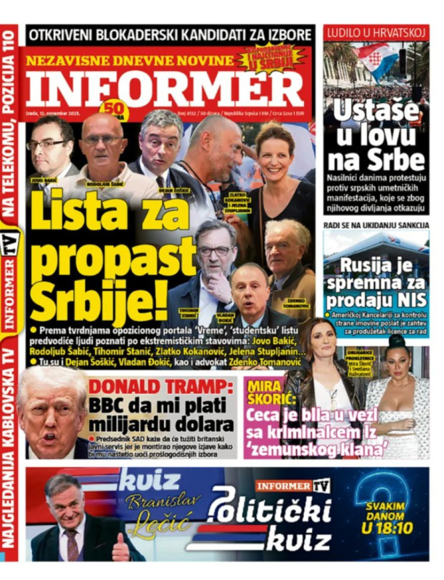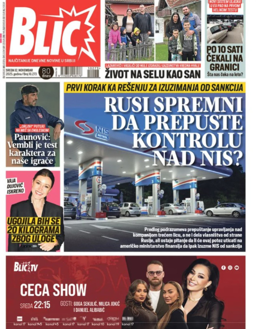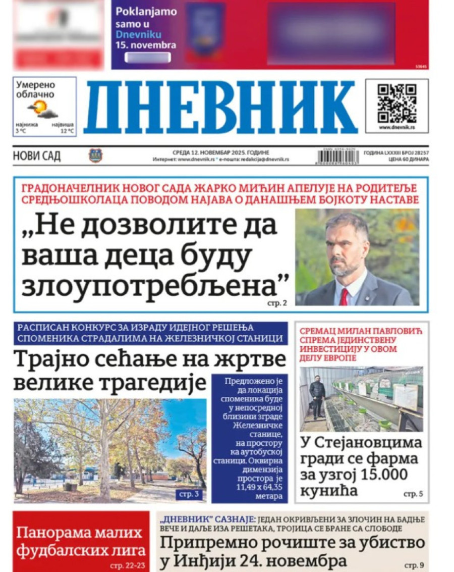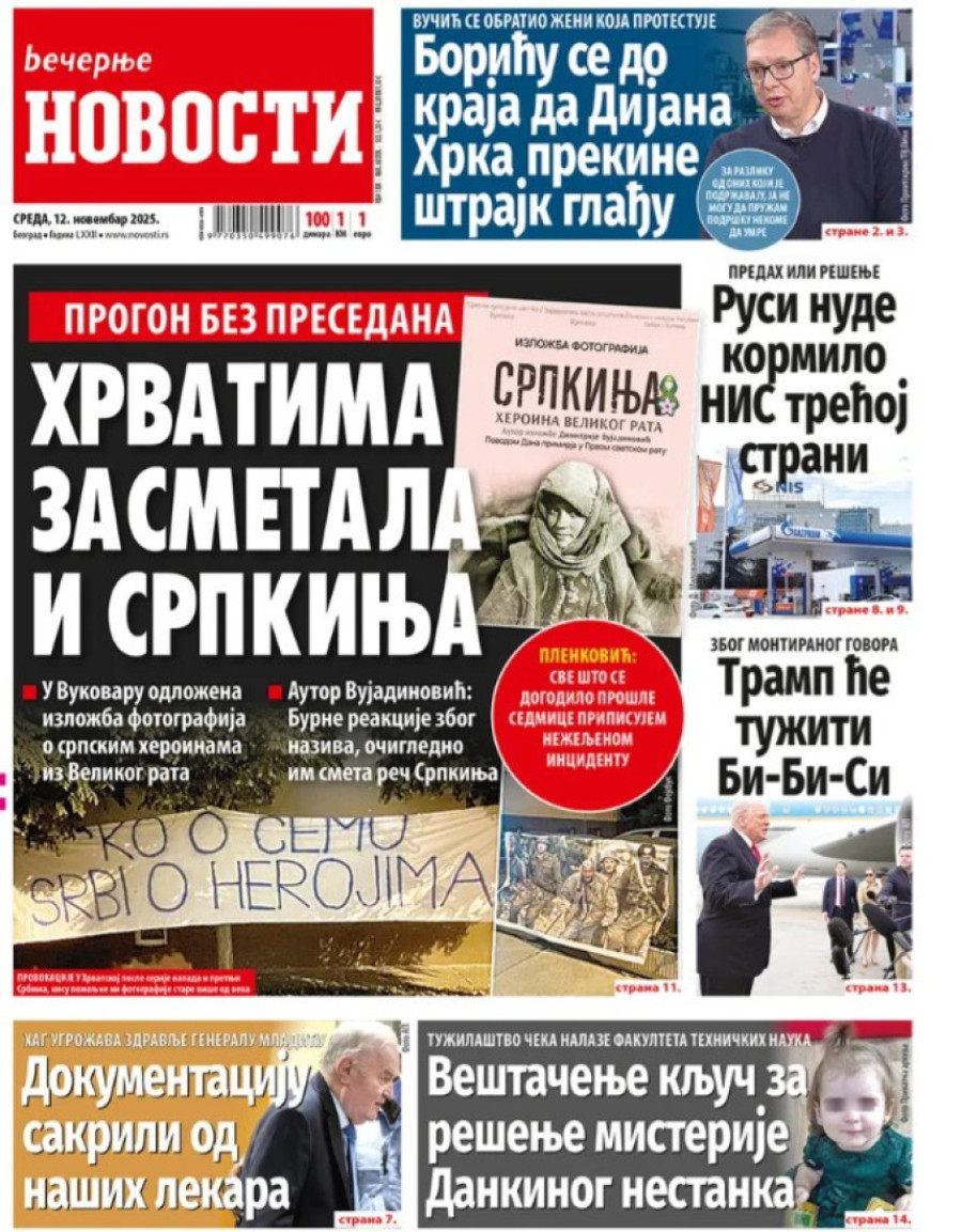 Naslovne strane dnevnih novina: Prelistavanje štampe za 12. novembar 2025. godine