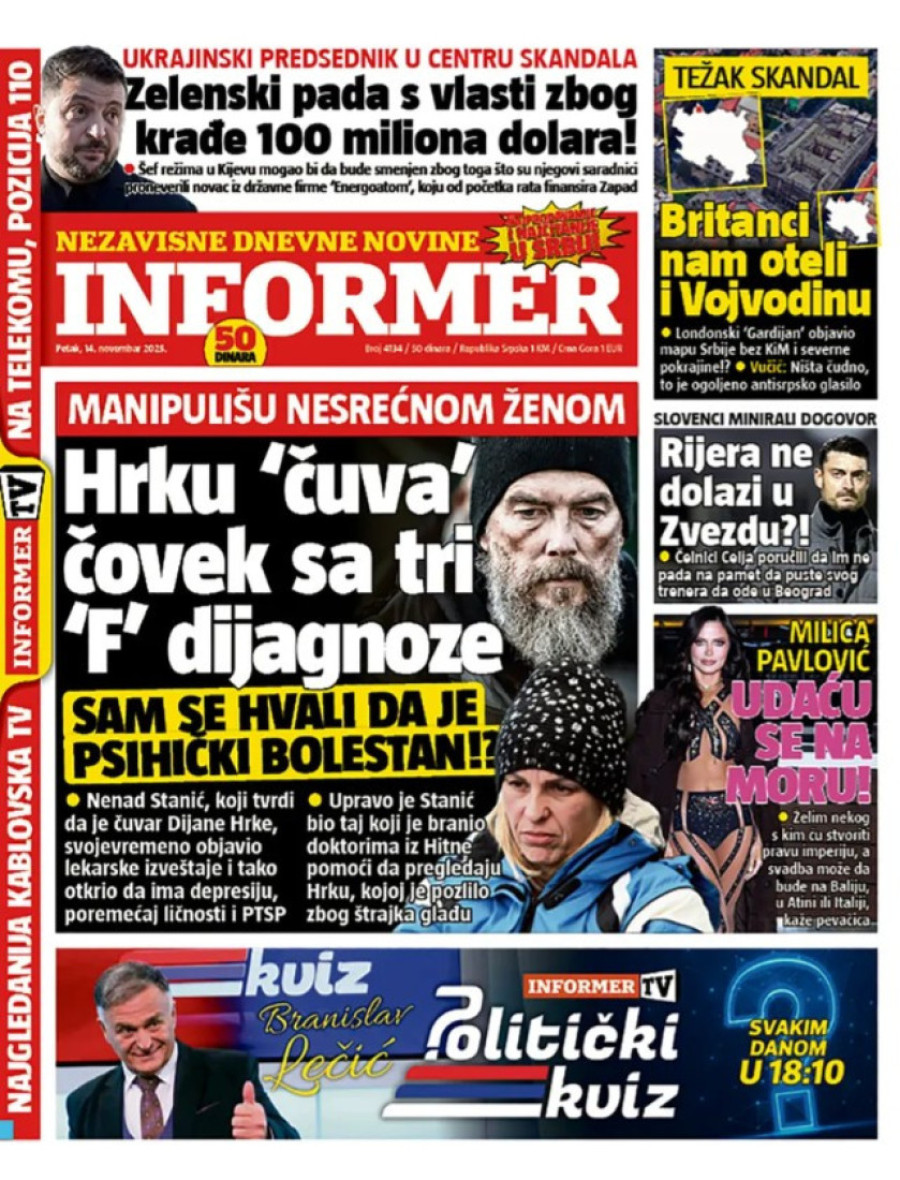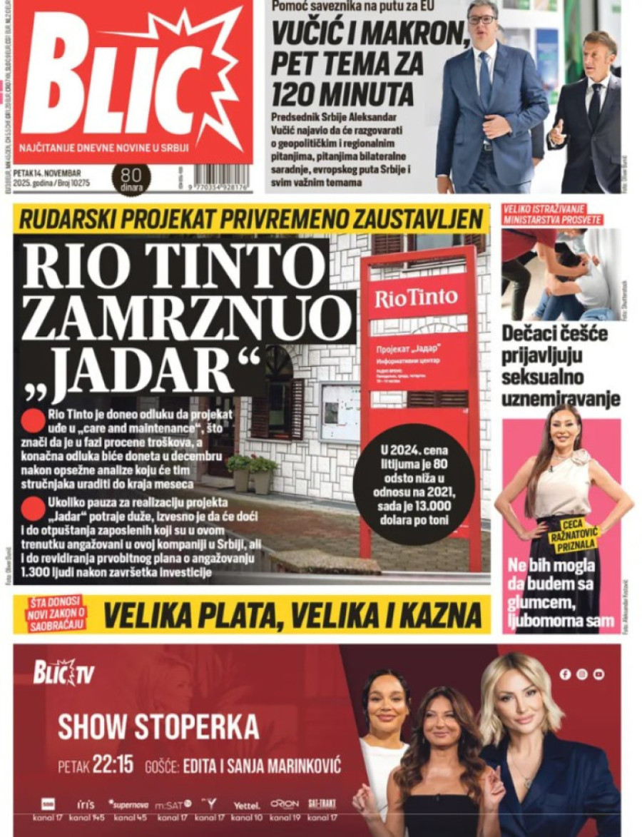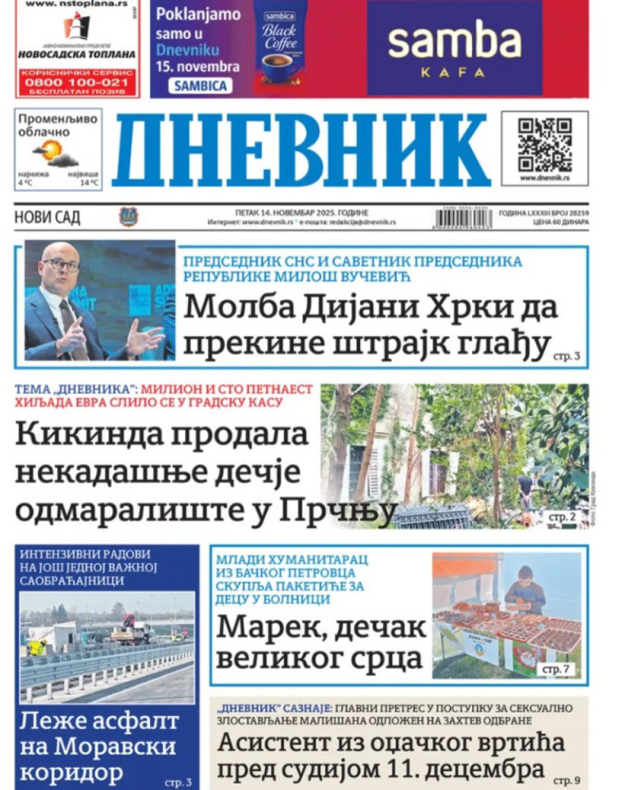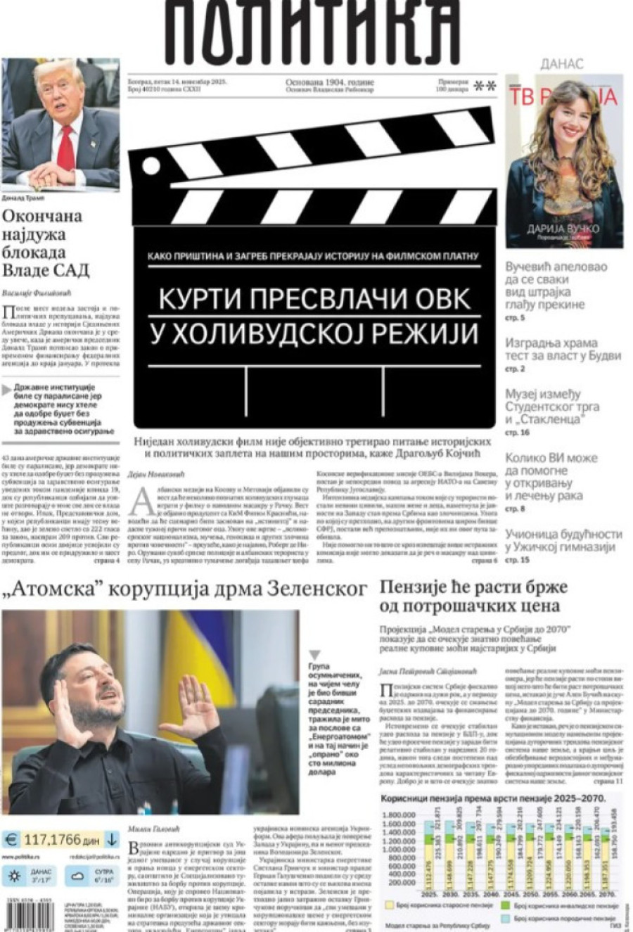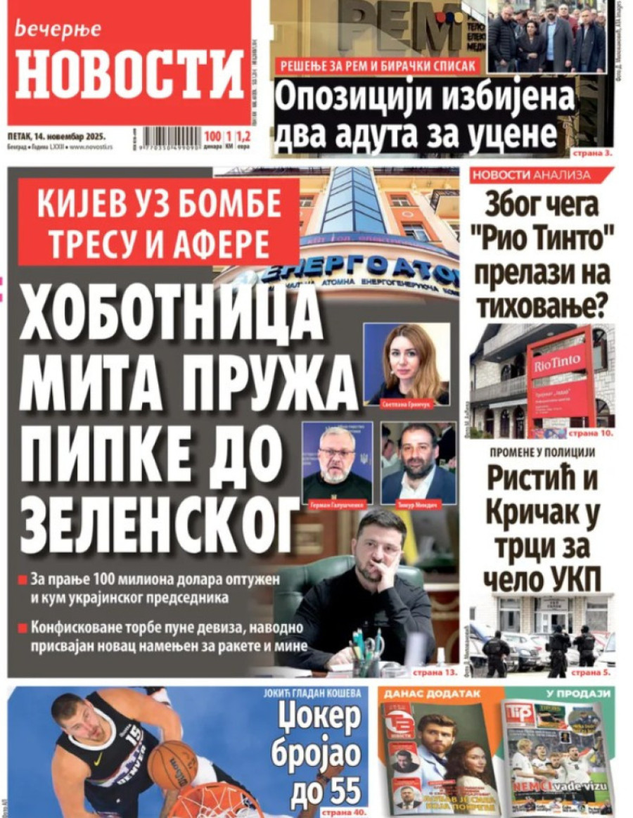 Naslovne strane dnevnih novina: Prelistavanje štampe za 14. novembar 2025. godine