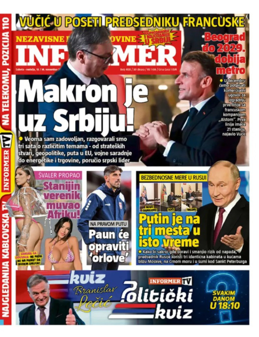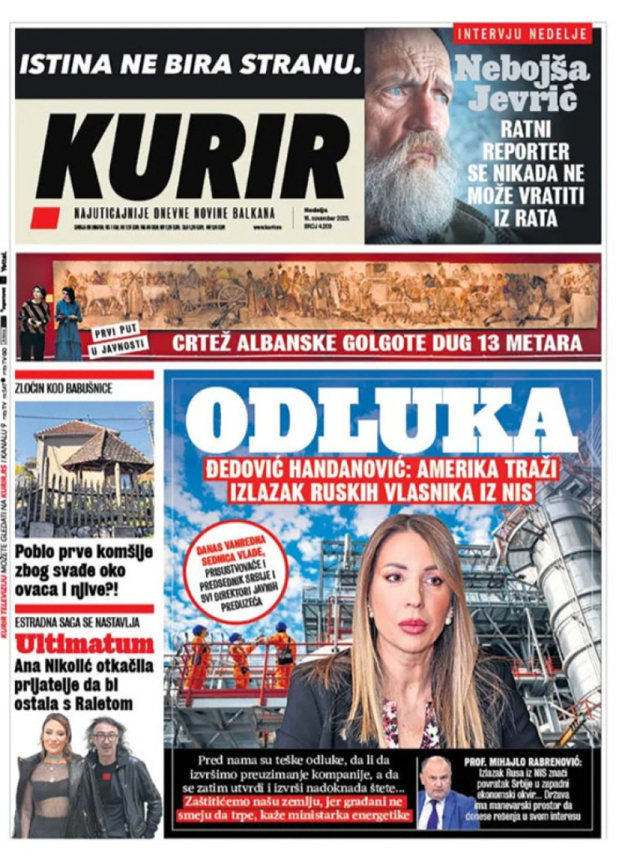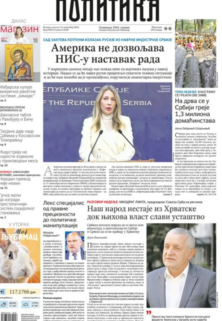 Naslovne strane dnevnih novina: Prelistavanje štampe za 16. novembar 2025. godine