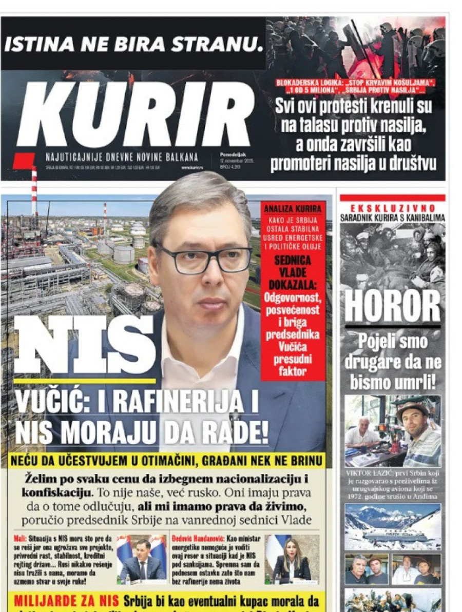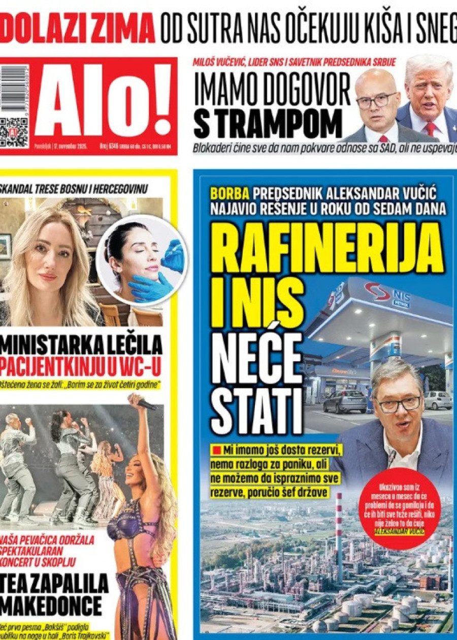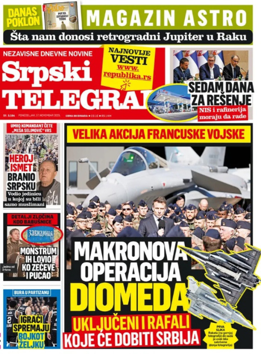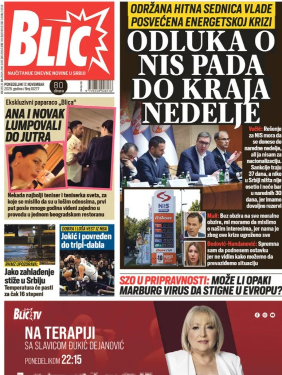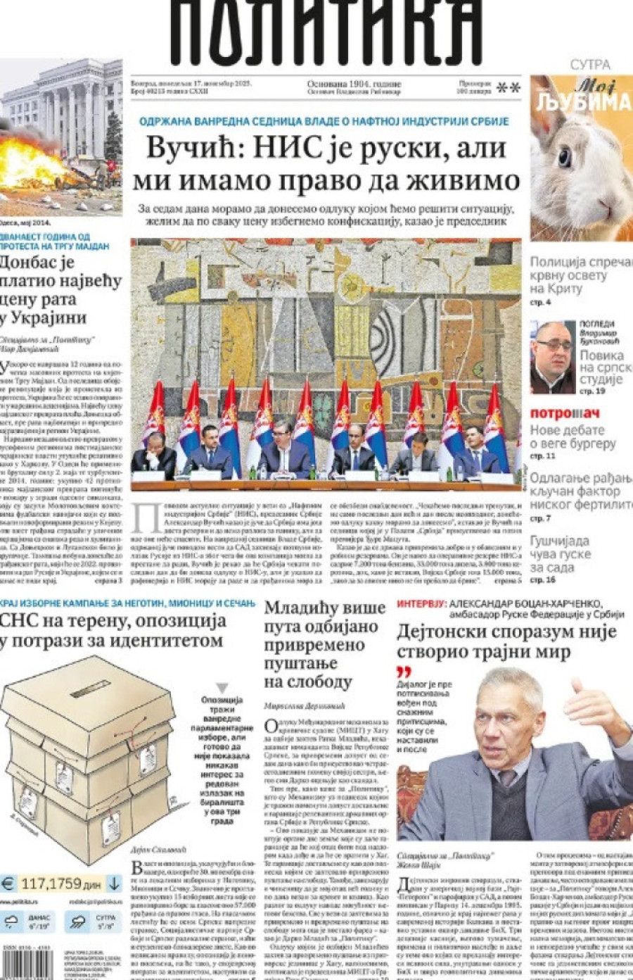 Naslovne strane dnevnih novina: Prelistavanje štampe za 17. novembar 2025. godine