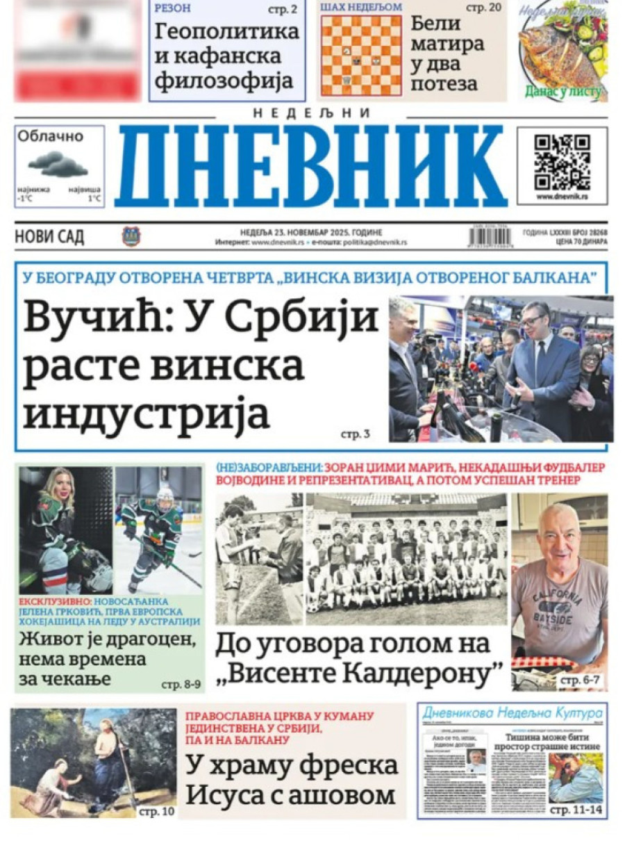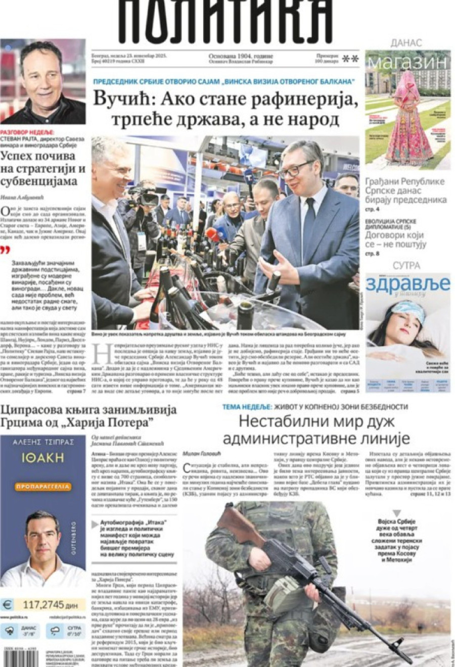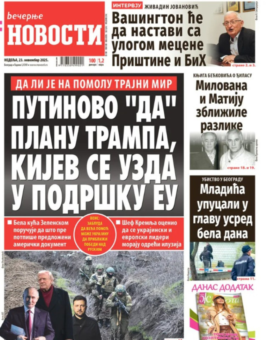 Naslovne strane dnevnih novina: Prelistavanje štampe za 23. novembar 2025. godine