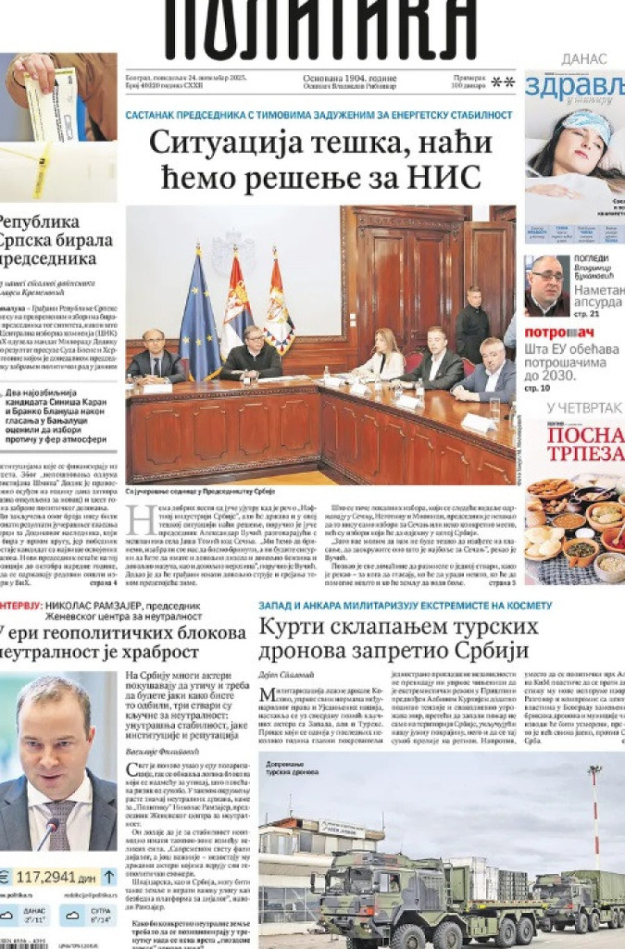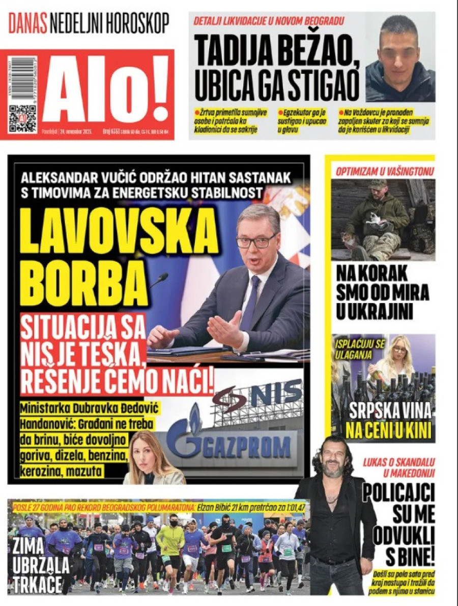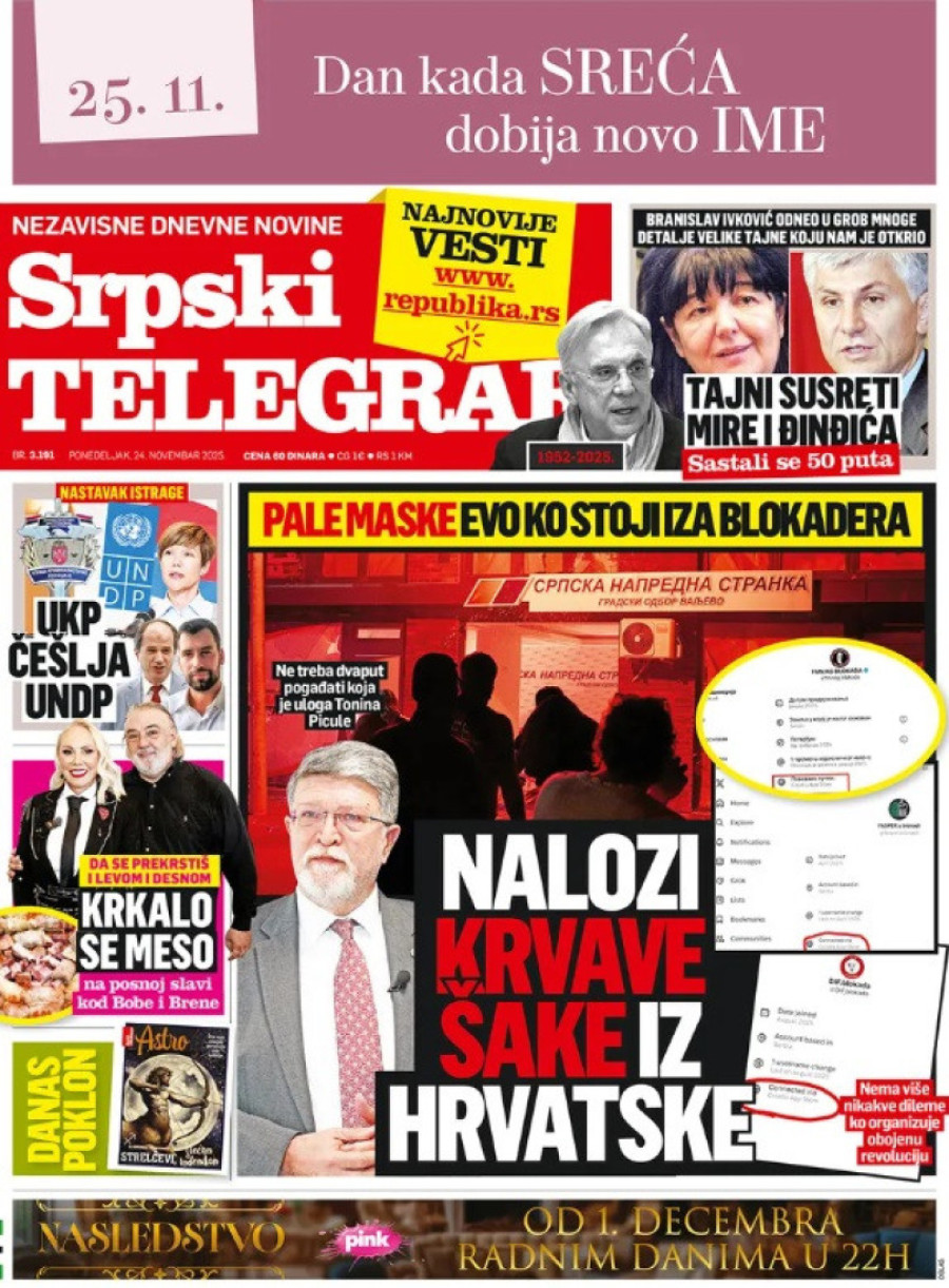 Naslovne strane dnevnih novina: Prelistavanje štampe za 24. novembar 2025. godine