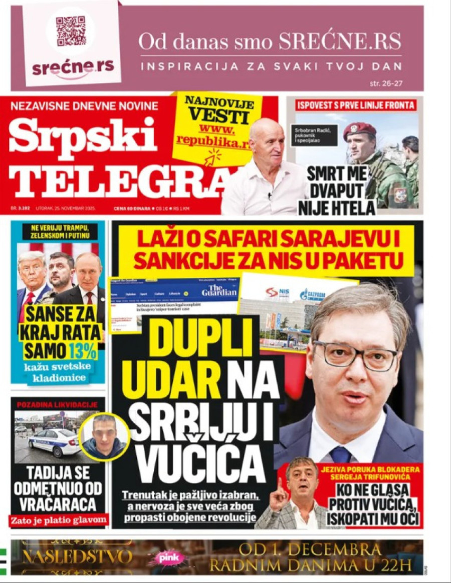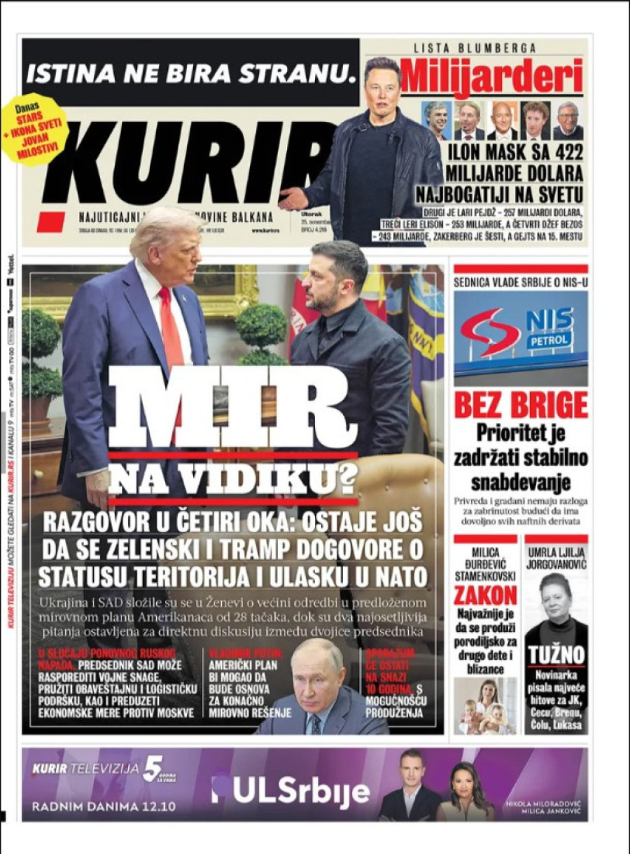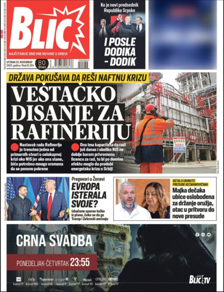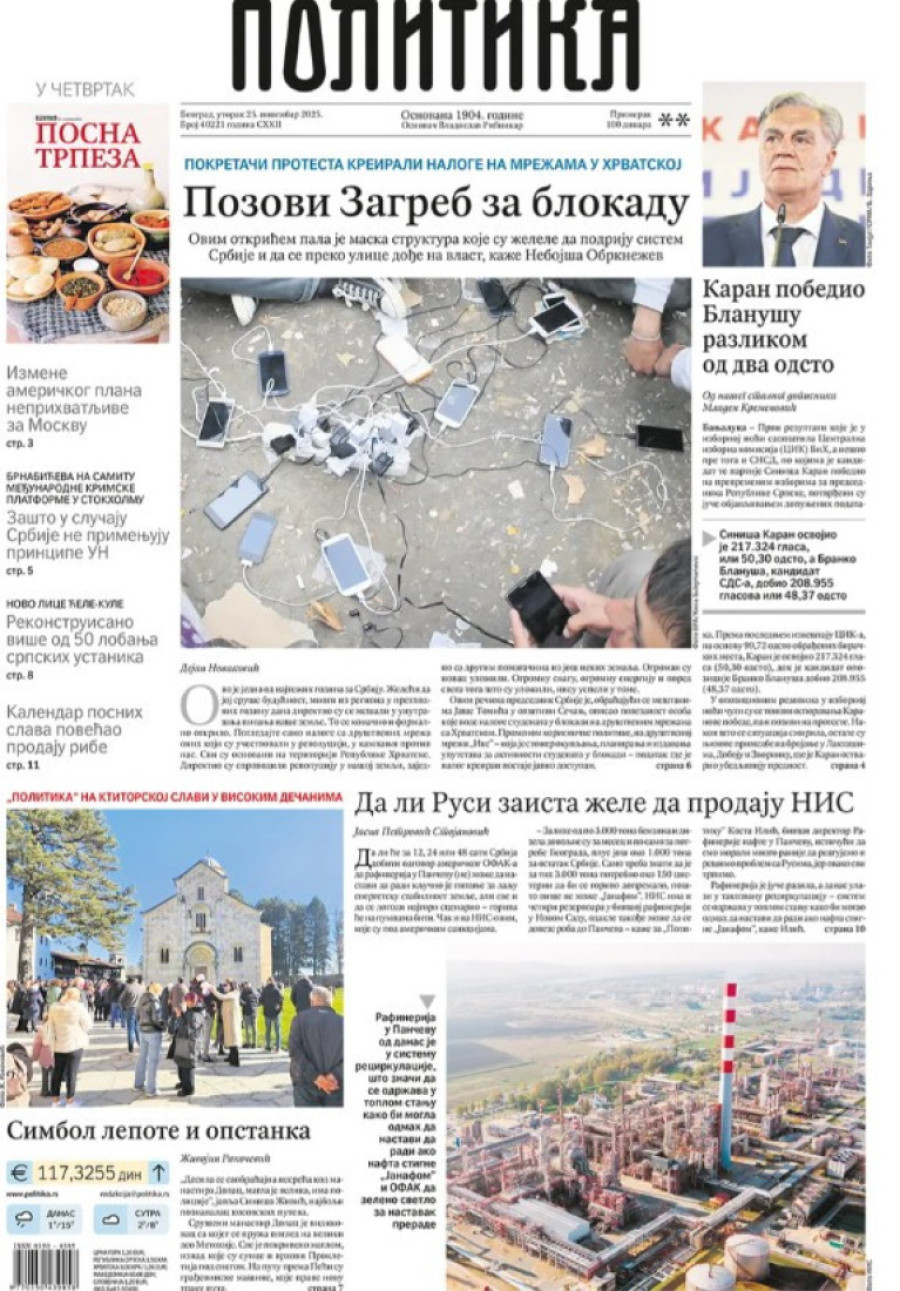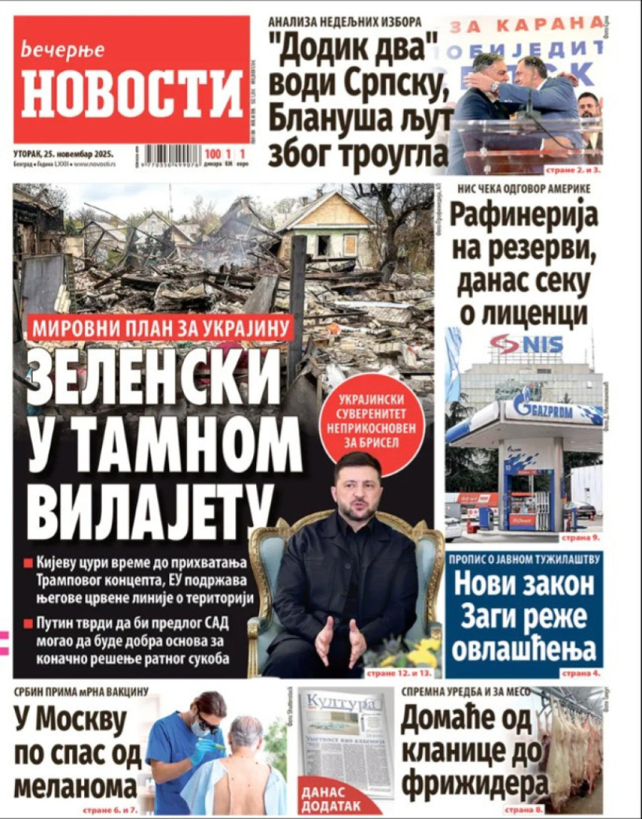 Naslovne strane dnevnih novina: Prelistavanje štampe za 25. novembar 2025. godine