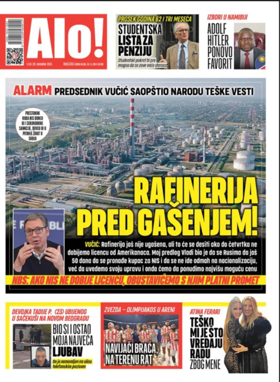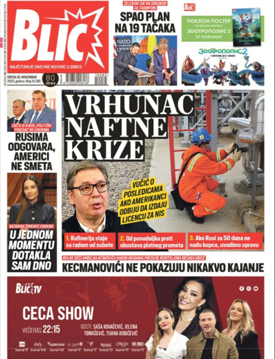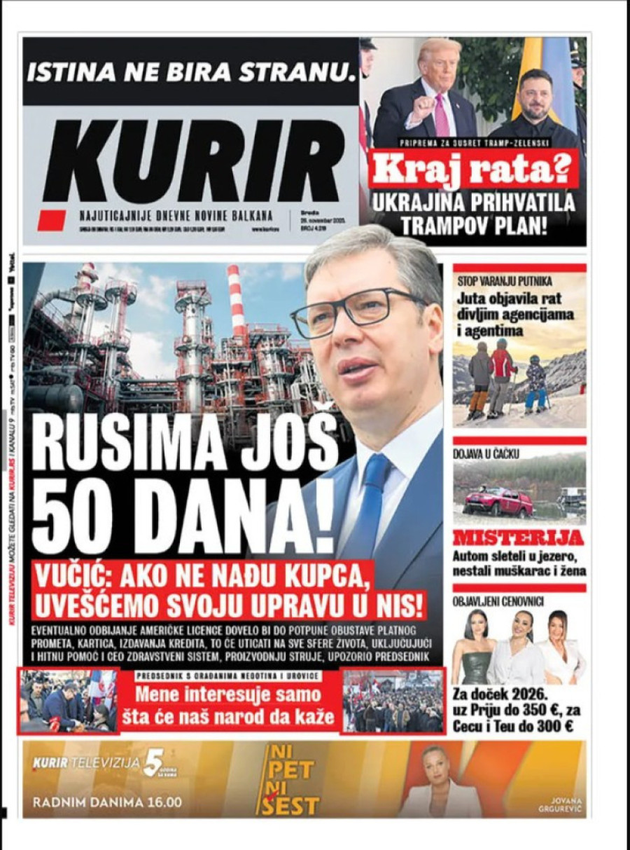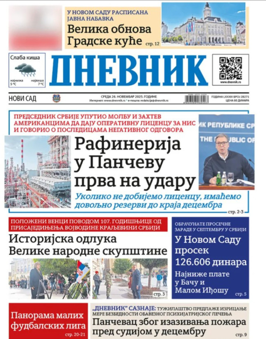 Naslovne strane dnevnih novina: Prelistavanje štampe za 26. novembar 2025. godine