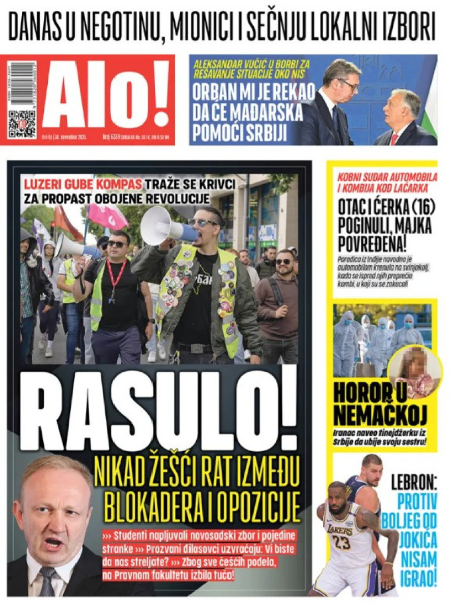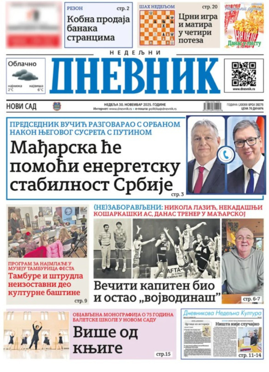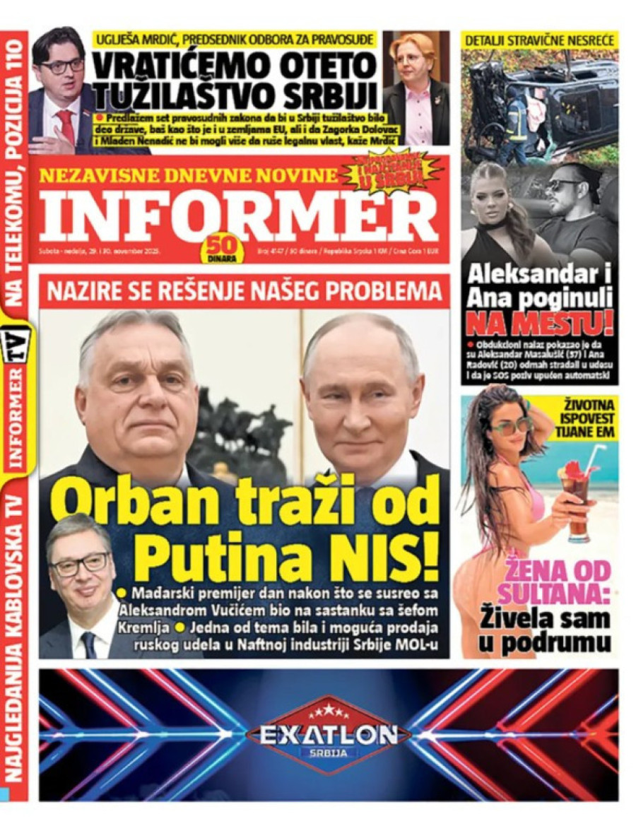 Naslovne strane dnevnih novina: Prelistavanje štampe za 30. novembar 2025. godine